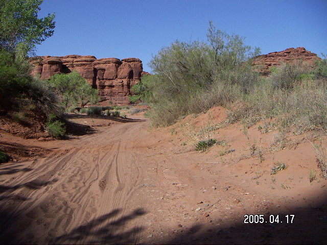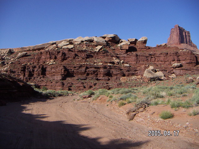 2005 April 18, Monday, 5ej-tow.jpg * Canyonlands National Park -- Lathrop Trail