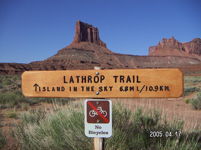 2005 April 18, Monday, 5ej-tnh.jpg * Canyonlands National Park -- Lathrop Trail -- sign