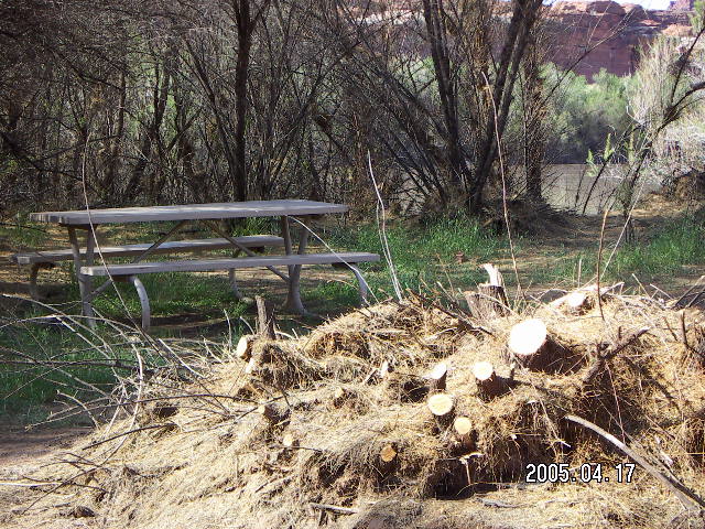 2005 April 18, Monday, 5ej-tof.jpg * Canyonlands National Park -- Lathrop Trail -- picnic table at the Colorado River