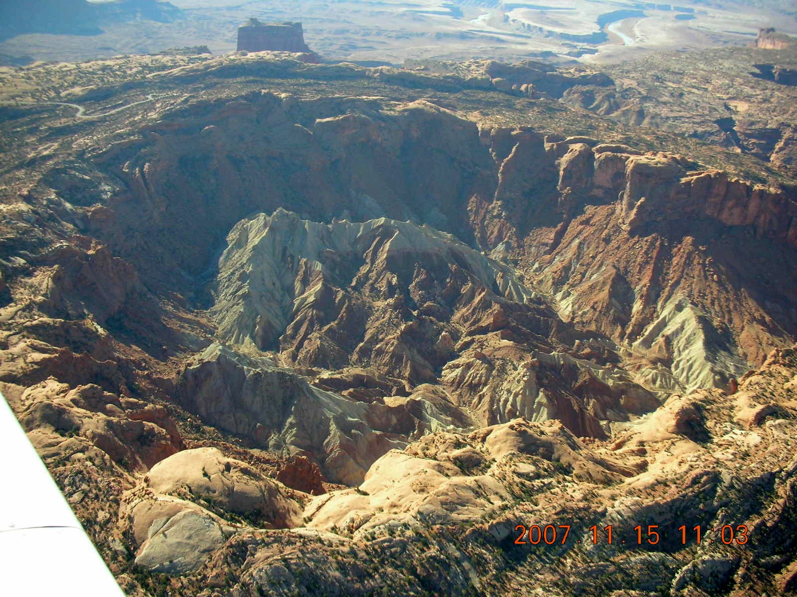 Well, that's what happened to me with Upheaval Dome. The trail goes up to the rim of a raised circle so I didn't see it. From the air I saw the double ring of raised and collapsed ground that makes Upheaval Dome interesting.
