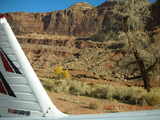 The description of Hidden Splendor is always focused on the narrow-canyon approach. So I could have some pictures of the inbound trajectory, I asked LaVar to fly the approach the first time and he said he would give me the controls just before touchdown. We flew over the airstrip first so I could see it and then we flew back around so he could follow the canyon to a nice landing.