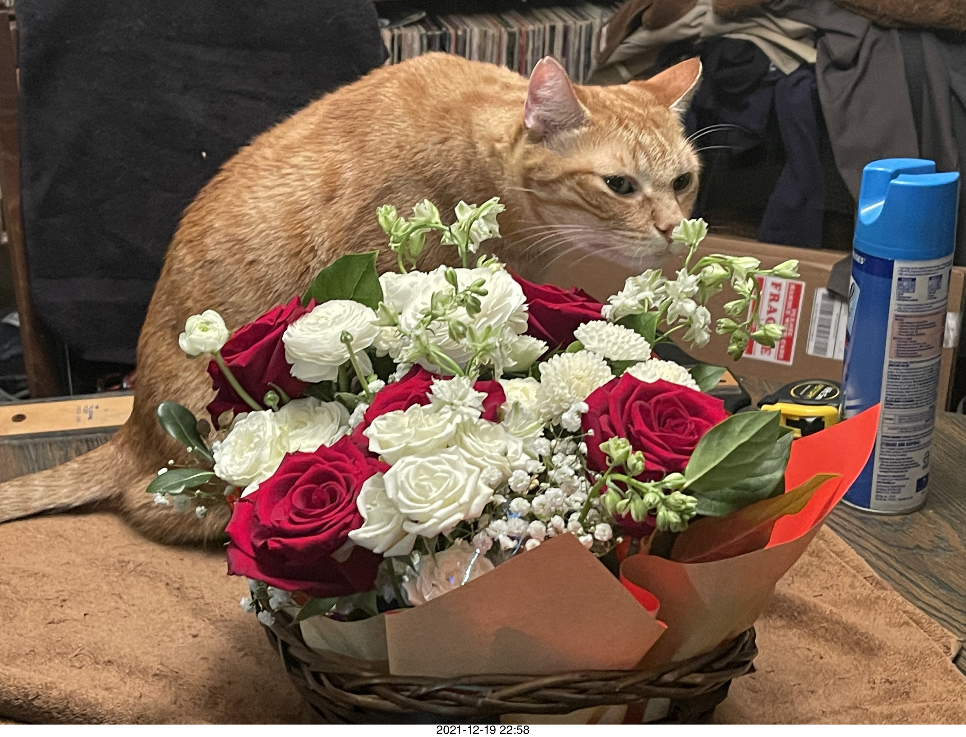 1081. my cat Max and birthday-gift flowers