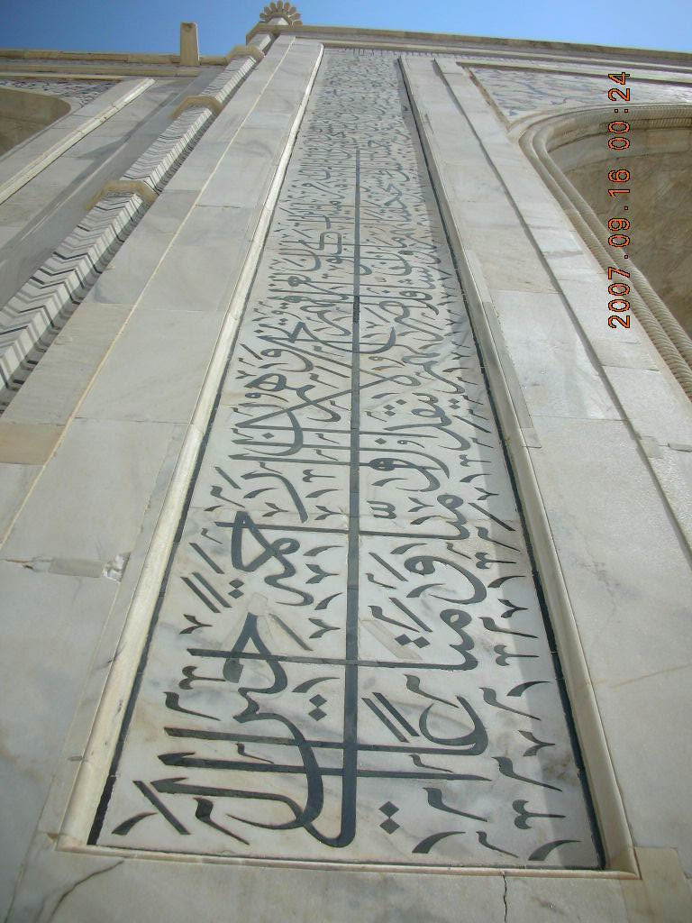 What I can tell you is that seeing this monument to Mumtaz Mahal makes Helen of Troy seem like plain-Jane. As I understand, after his first two wives bore no children, emporer Shah Jahan married young Mumtaz who bore thirteen children and died giving birth to number fourteen. He built Taj Mahal as a resting place for his beloved wife.