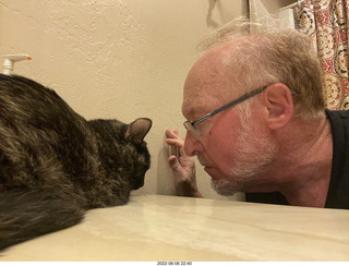 2022 July 1, Friday, through 2022 July 7, Thursday. Miss Pris continues to be a pleasant chore. I keep her food and water full and there is plenty of automatic litter-box capacity in the bathroom safe space. There are snuggles with nose rubs and tongue washings several times a day with occasional supervised visits with my other cats Devin and Jane.