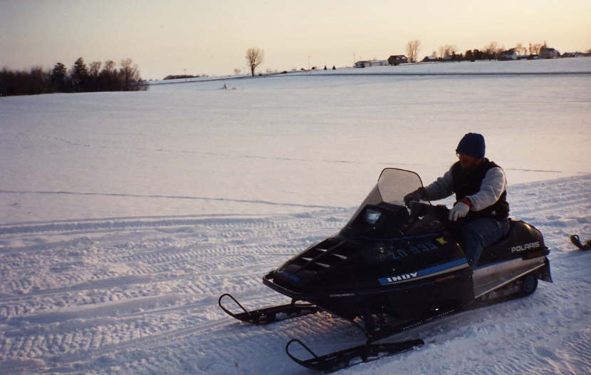 Adam riding snowmobile NWA Adam and Barry