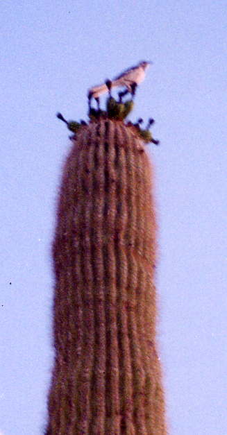 Pinnacle Peak, morning silhouette of neighboring hill Pinnacle Peak, morning mockingbird on saguaro cactus