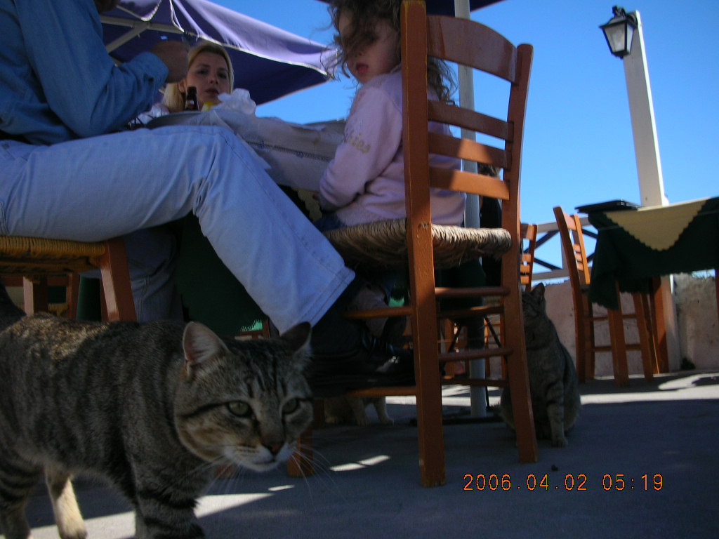 2006 eclipse trip -- Athens 1896 Olympic stadium -- flag 2006 eclipse trip -- Santorini shopping stop -- cat