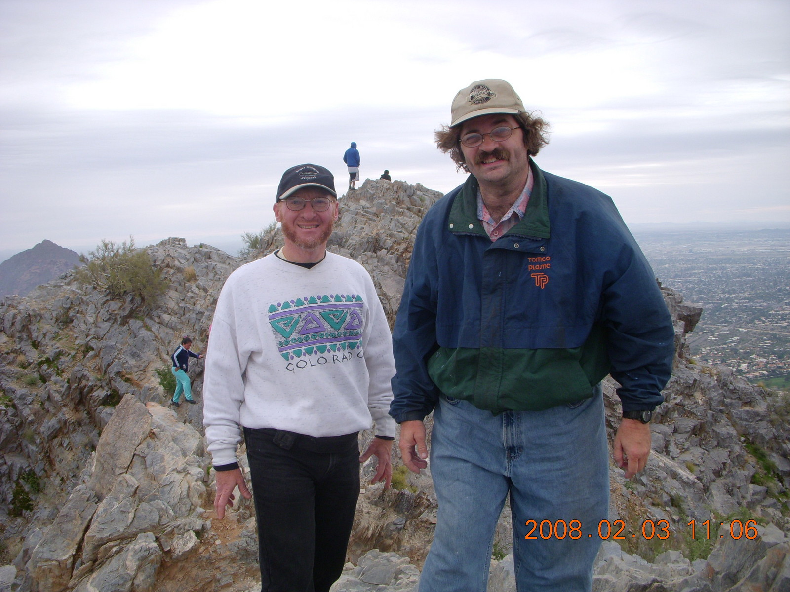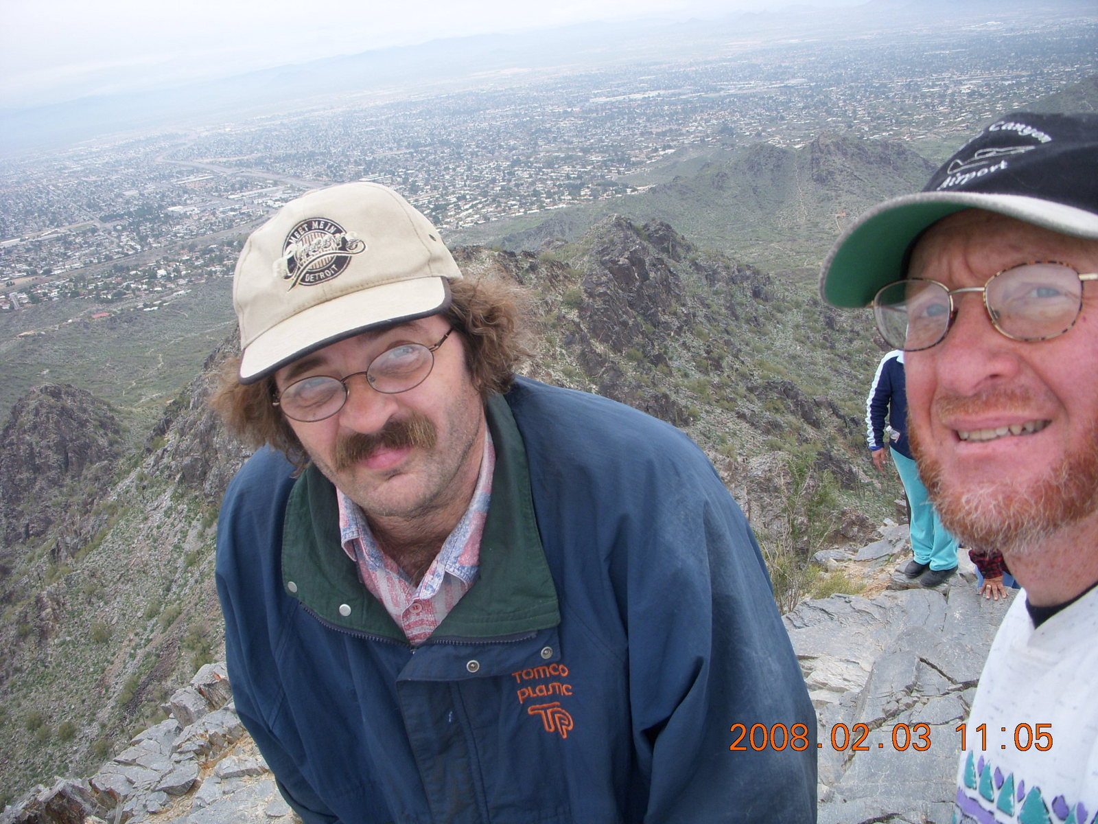 Dave and Adam at the top of Piestowa (Squaw) Peak Grand Canyon - Bright Angel trail - Sonia taking a picture