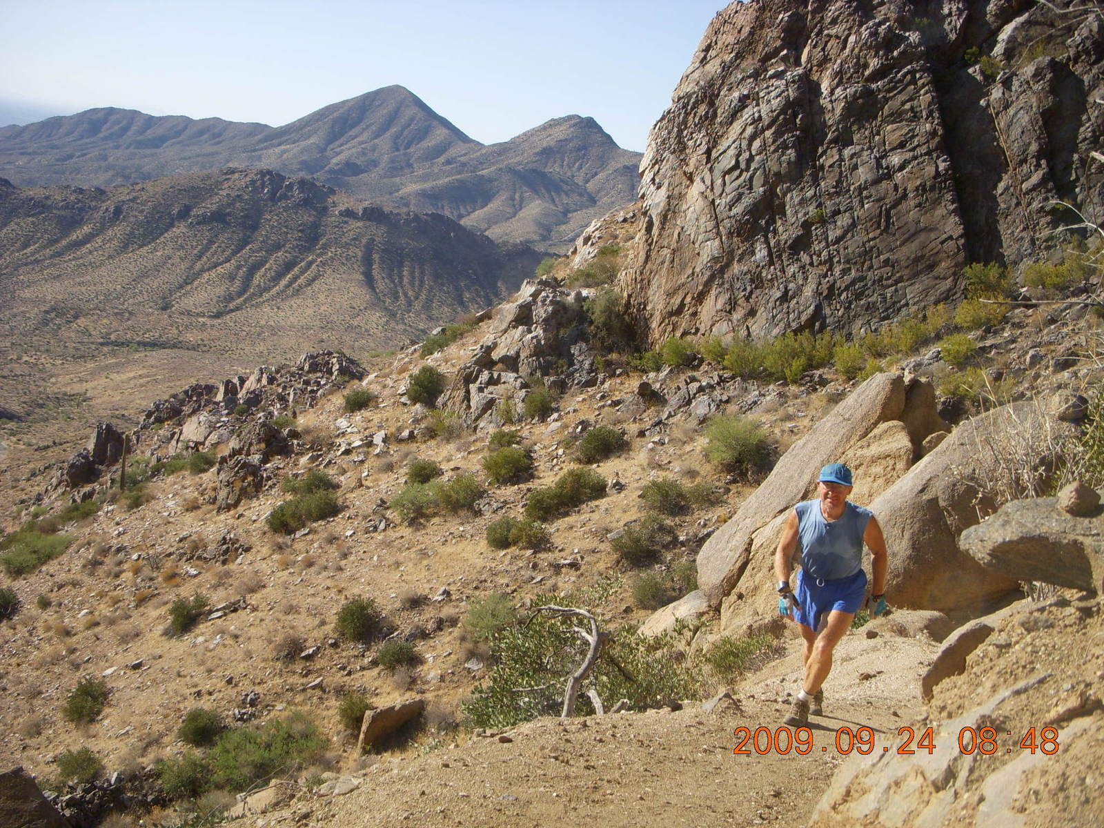 Arches National Park - Devil's Garden hike - Adam in Double-O Arch Canyonlands - Lathrop trail hike - Adam at trailhead sign