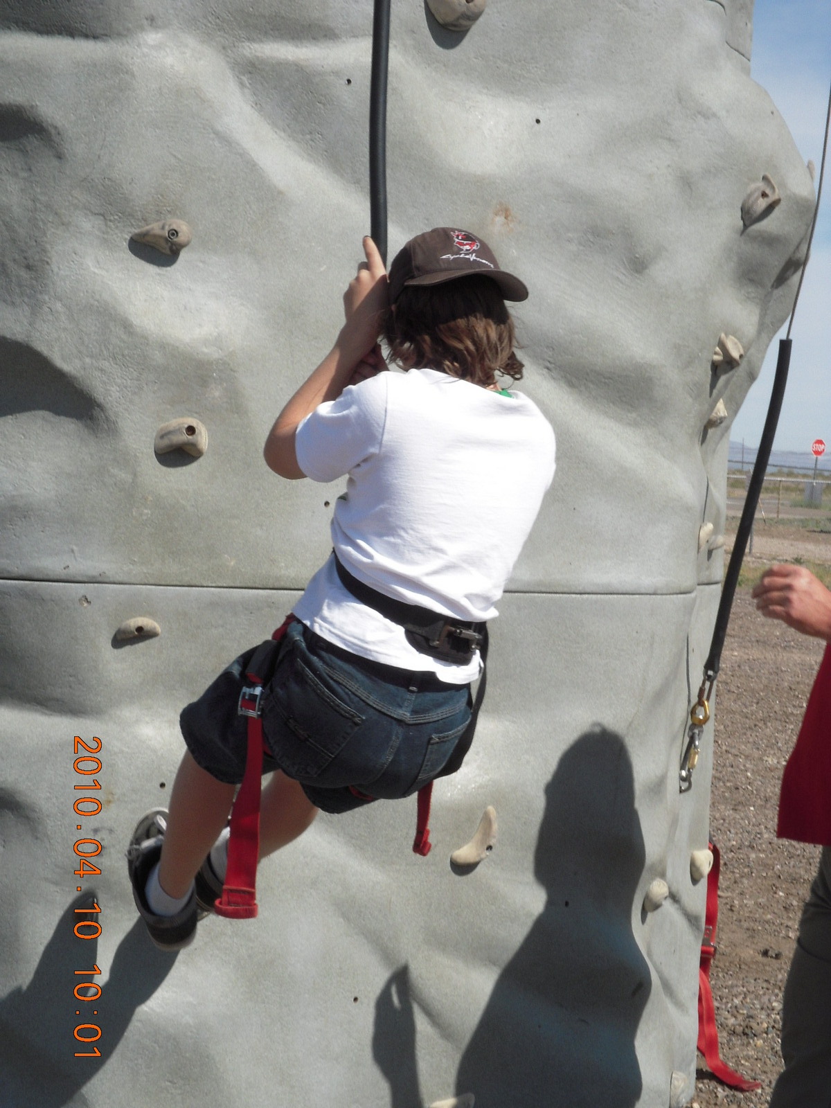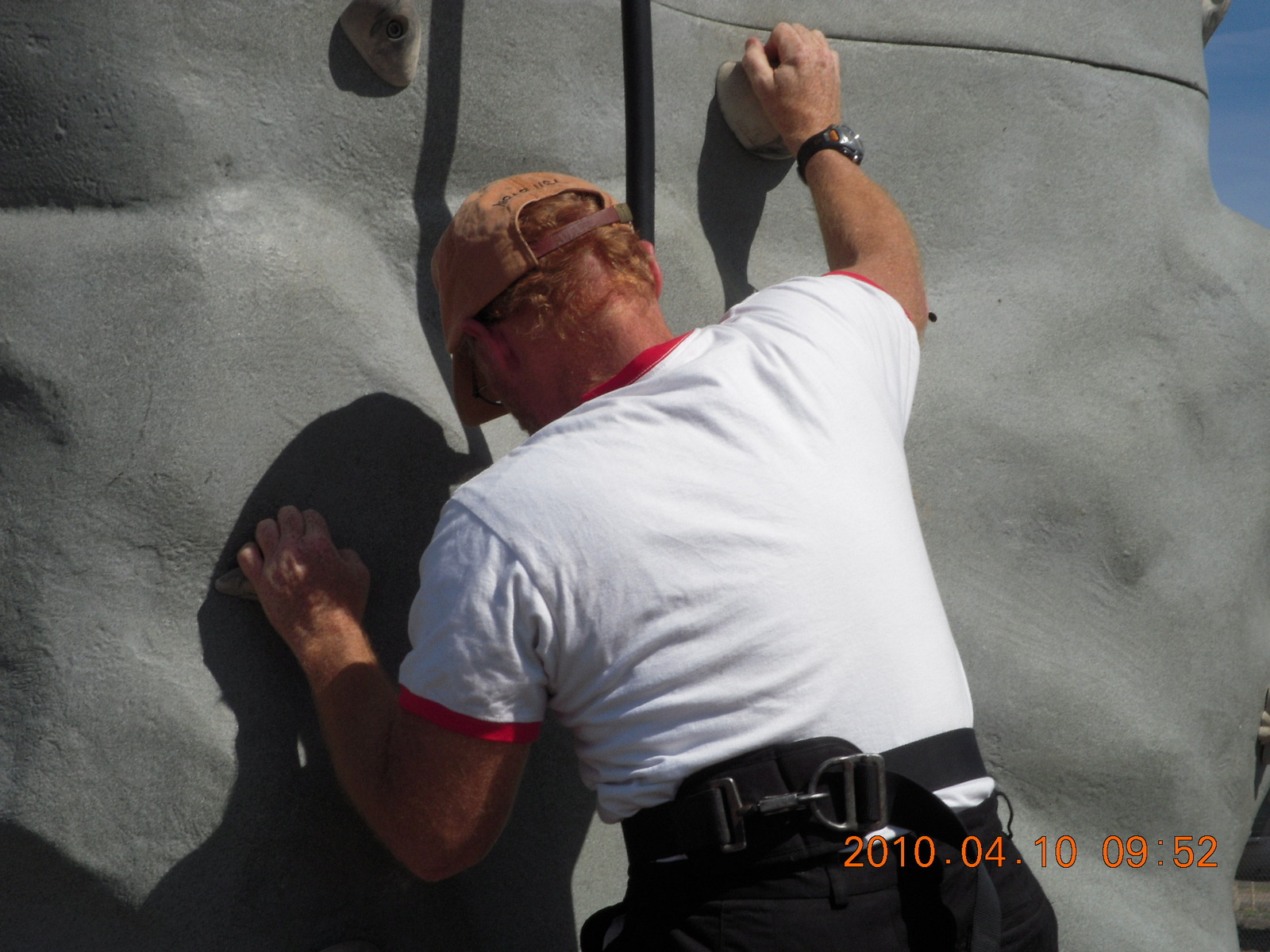 2781. Gila Bend (E63) fly in - young guy climbing 'plastic pigs's nose' rocks