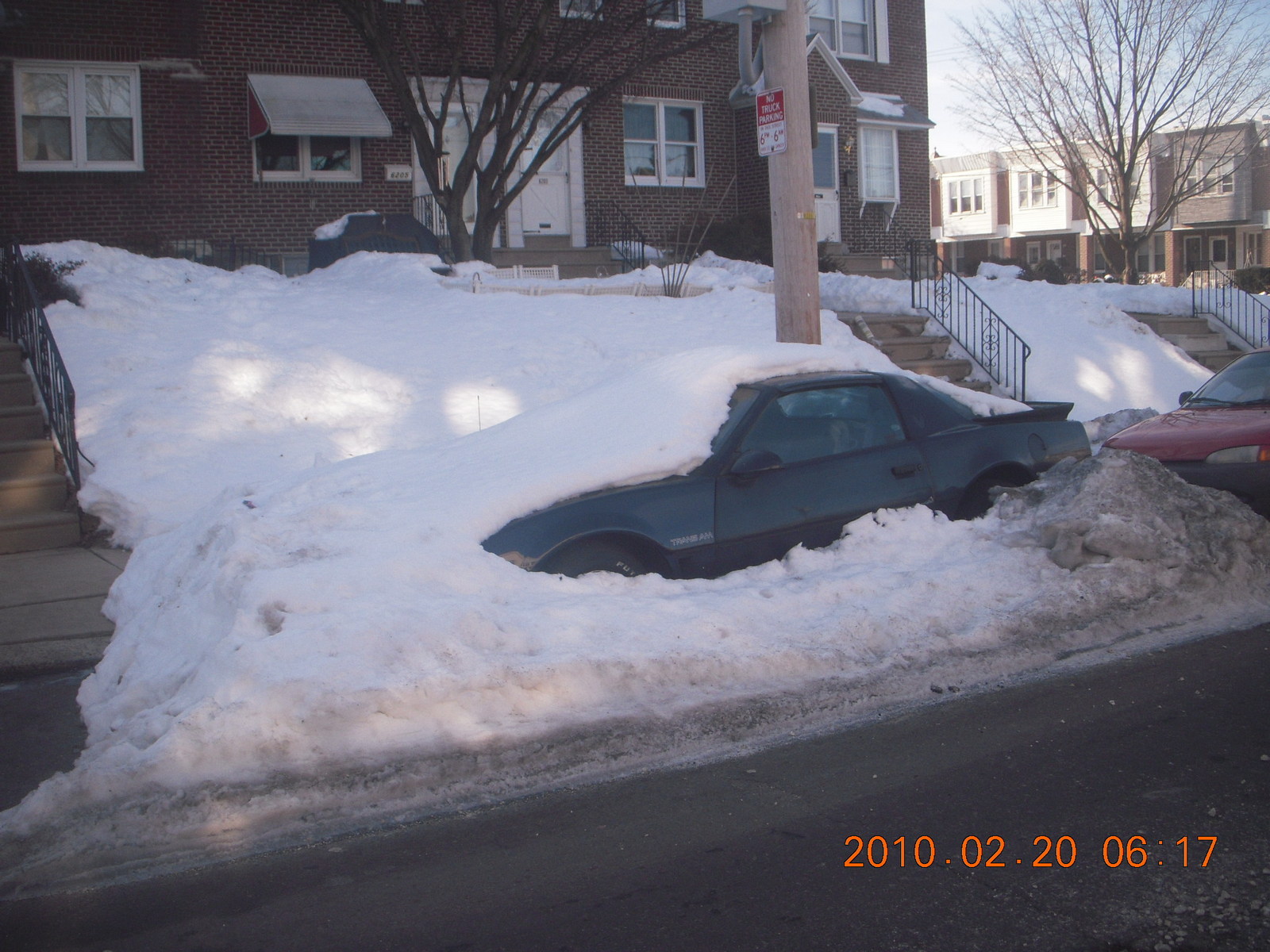 snow-covered parked car in Philadelphia Ben Franklin Bridge back to Philadelphia