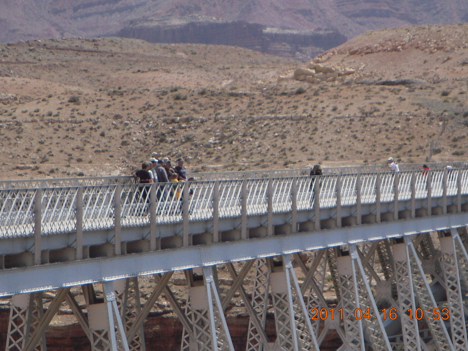 530. Marble Canyon - taking a group picture on Navajo Bridge