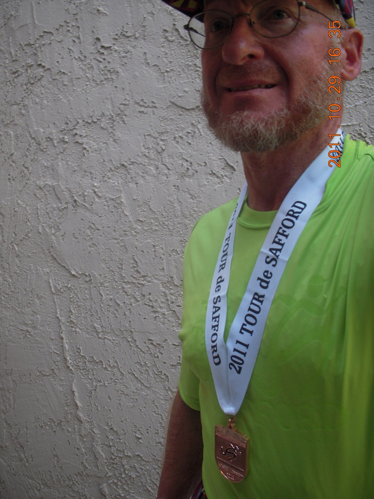 85. Adam with shirt and medal from Safford half-marathon race