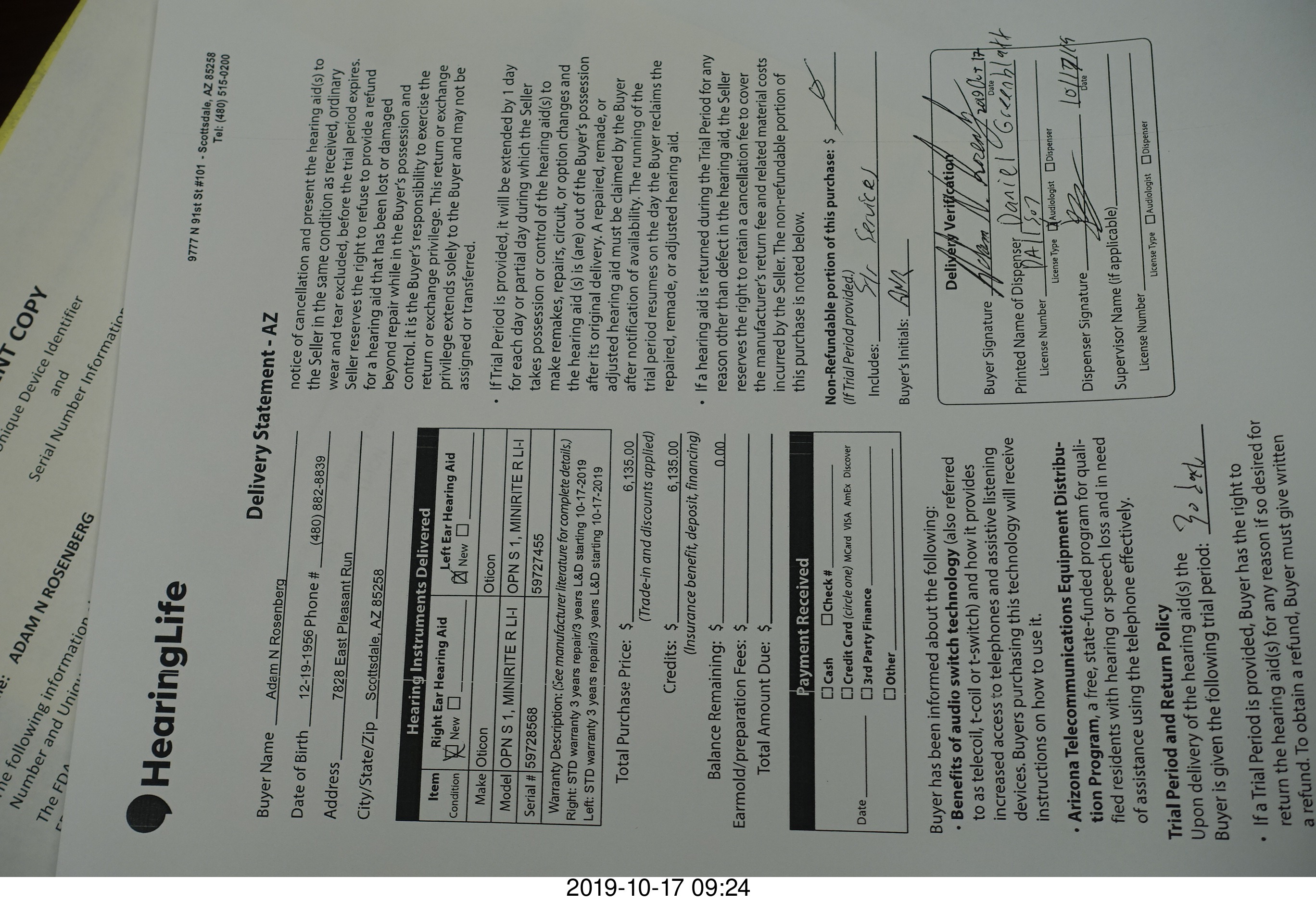 31. Oticon hearing aids paperwork