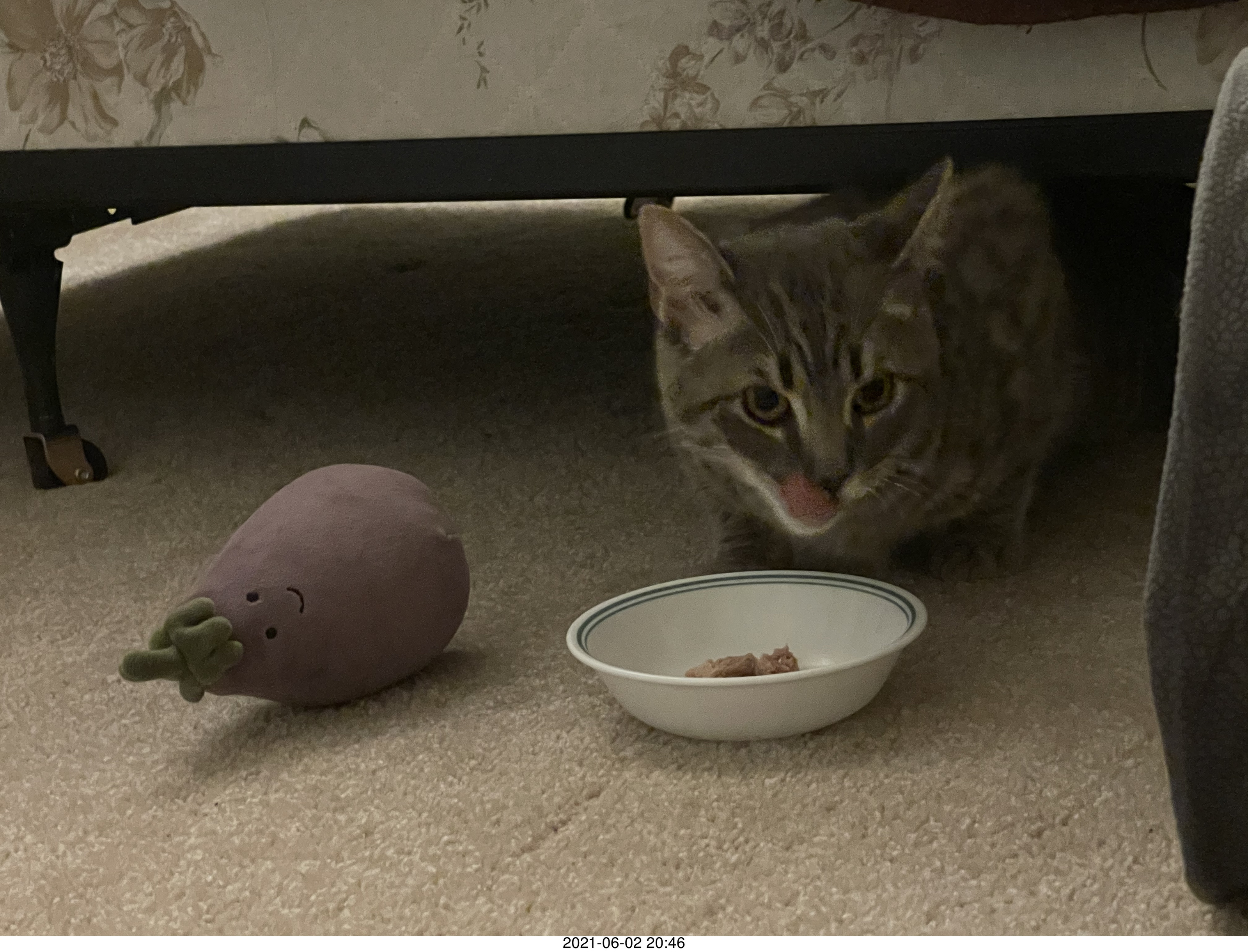 47. cat Potato hiding under the bed at Cat Camp