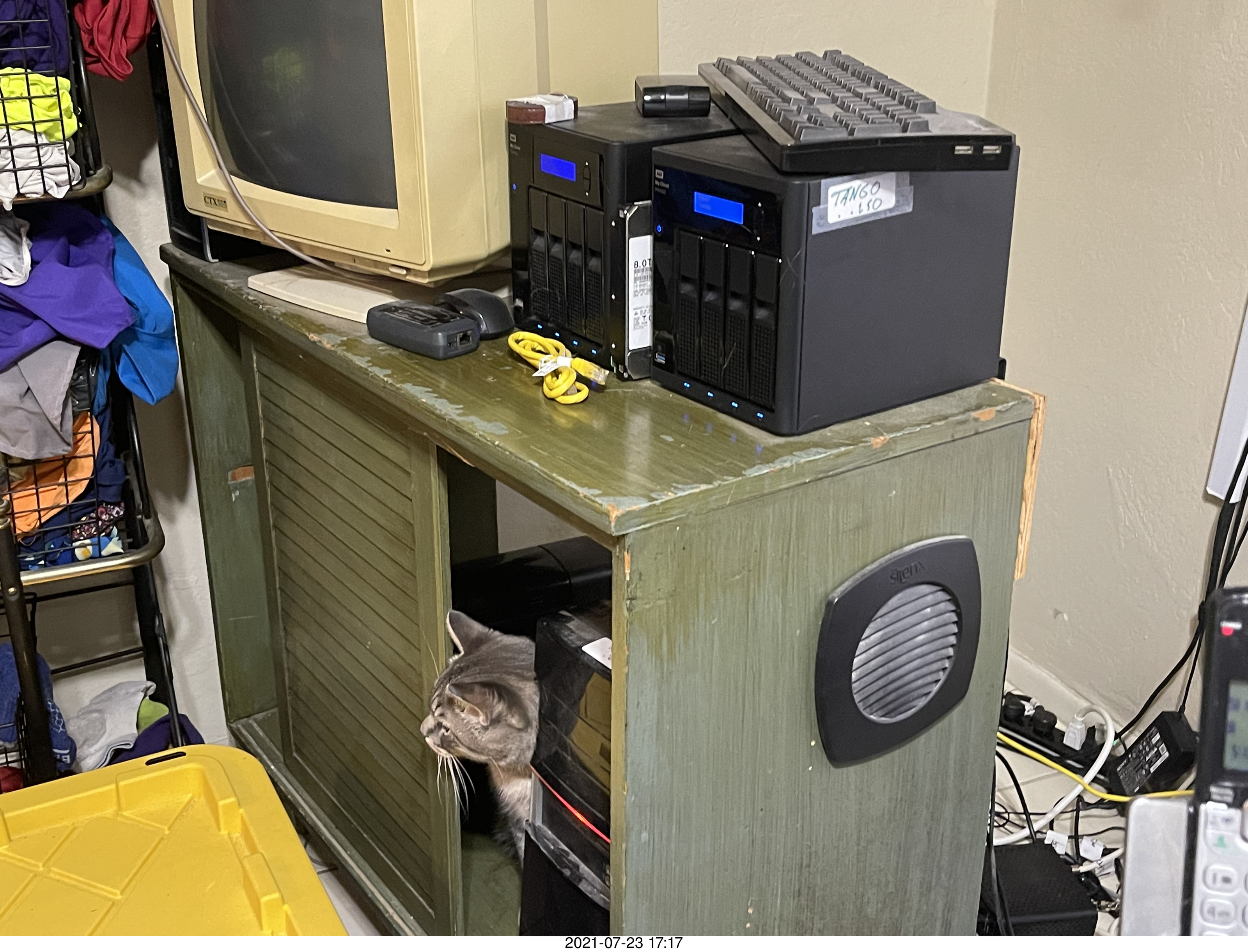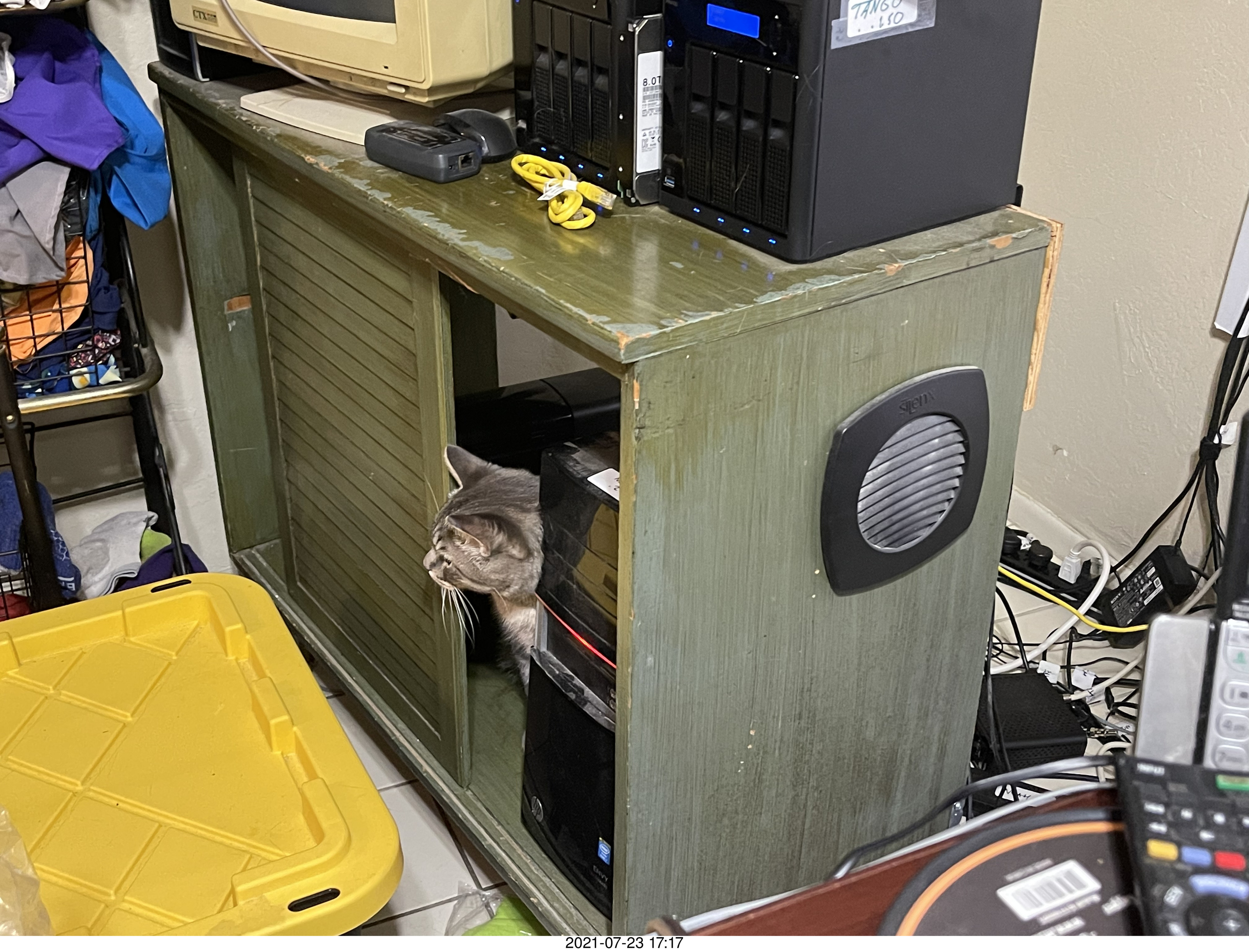 226. cat Potato in my computer cabinet