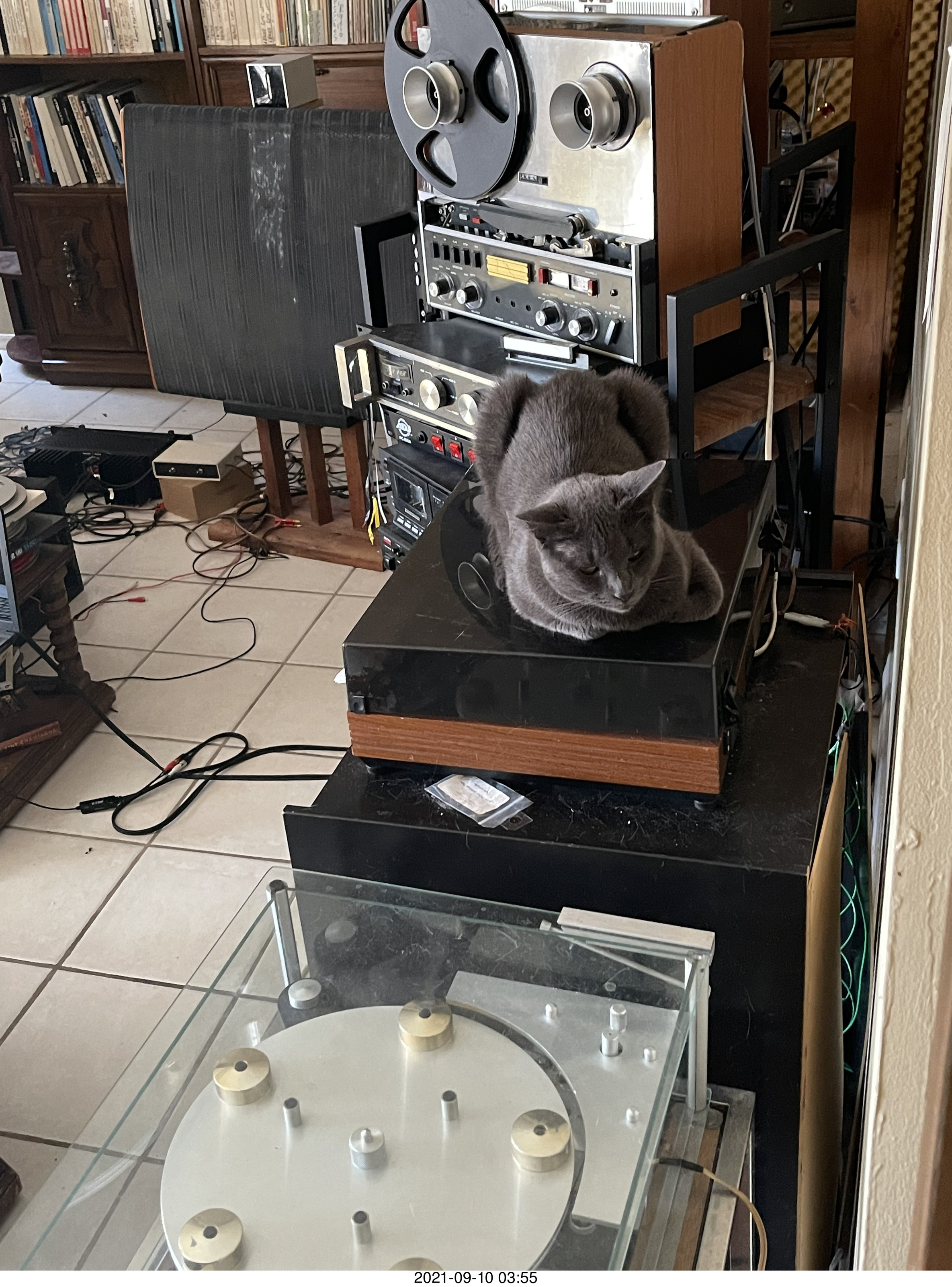 cat Jane in my hifi room my cat Jane on top of my Linn turntable