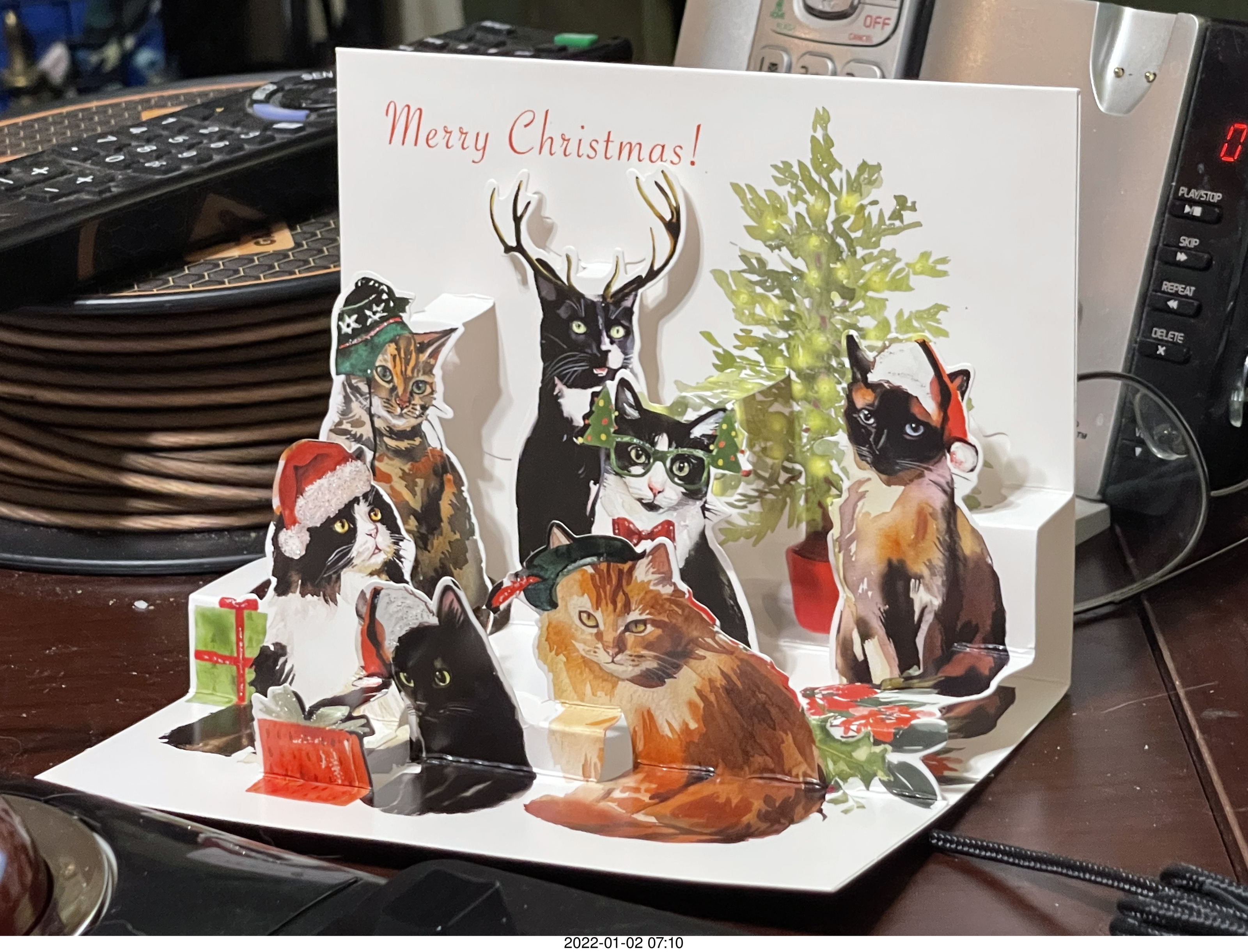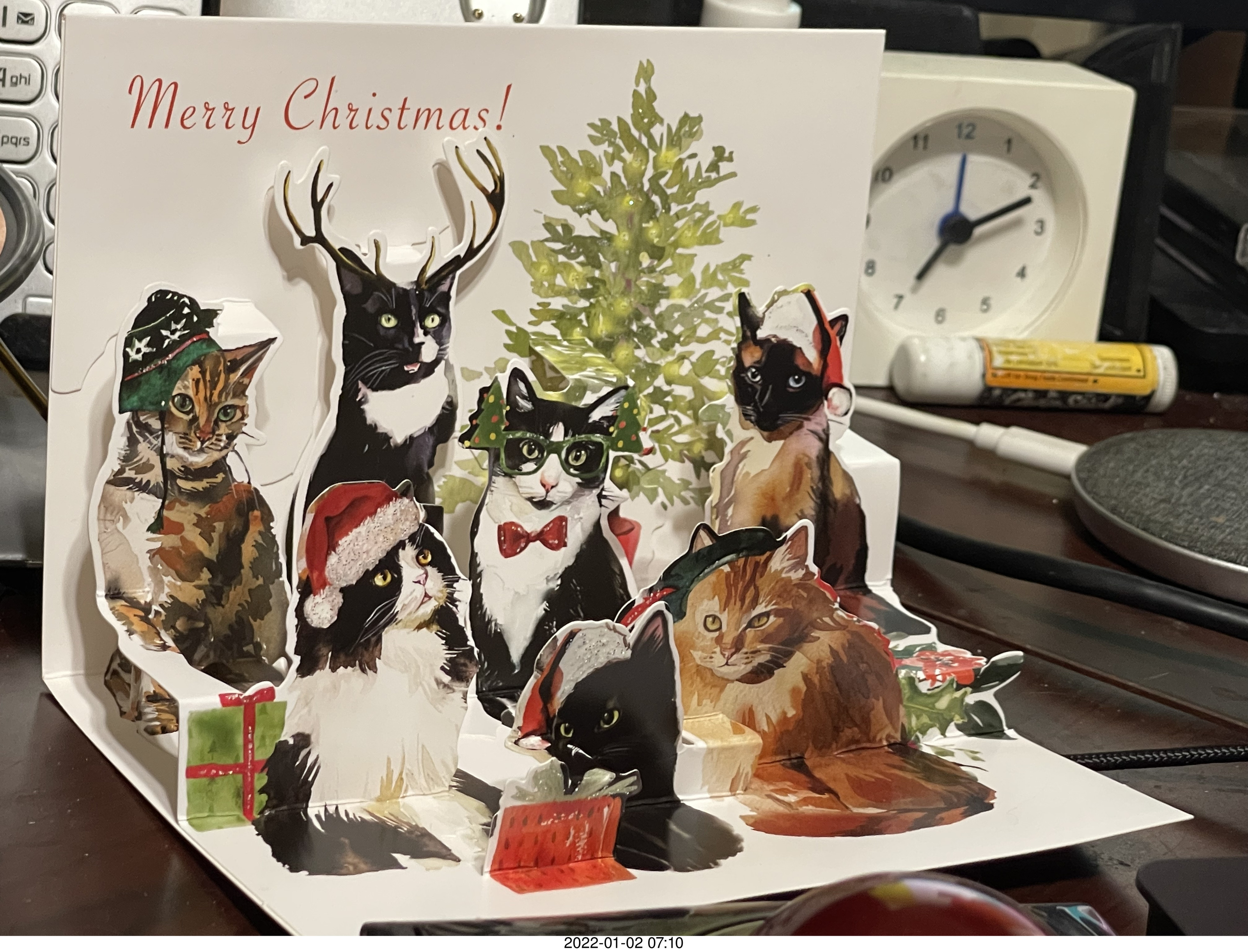 689. Olga and Anthony holiday/birthday card - 3D cats