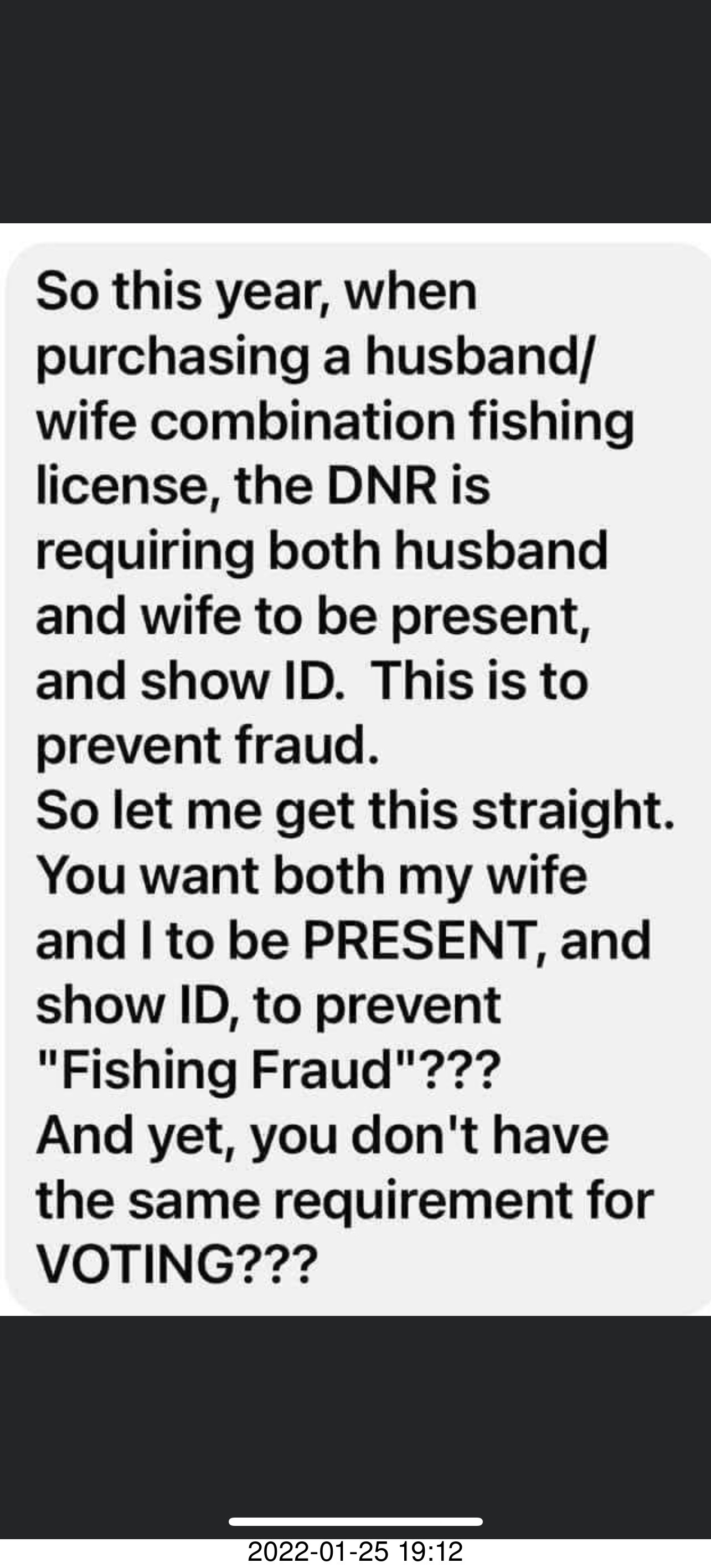 98. fishing license photo id, but not voting