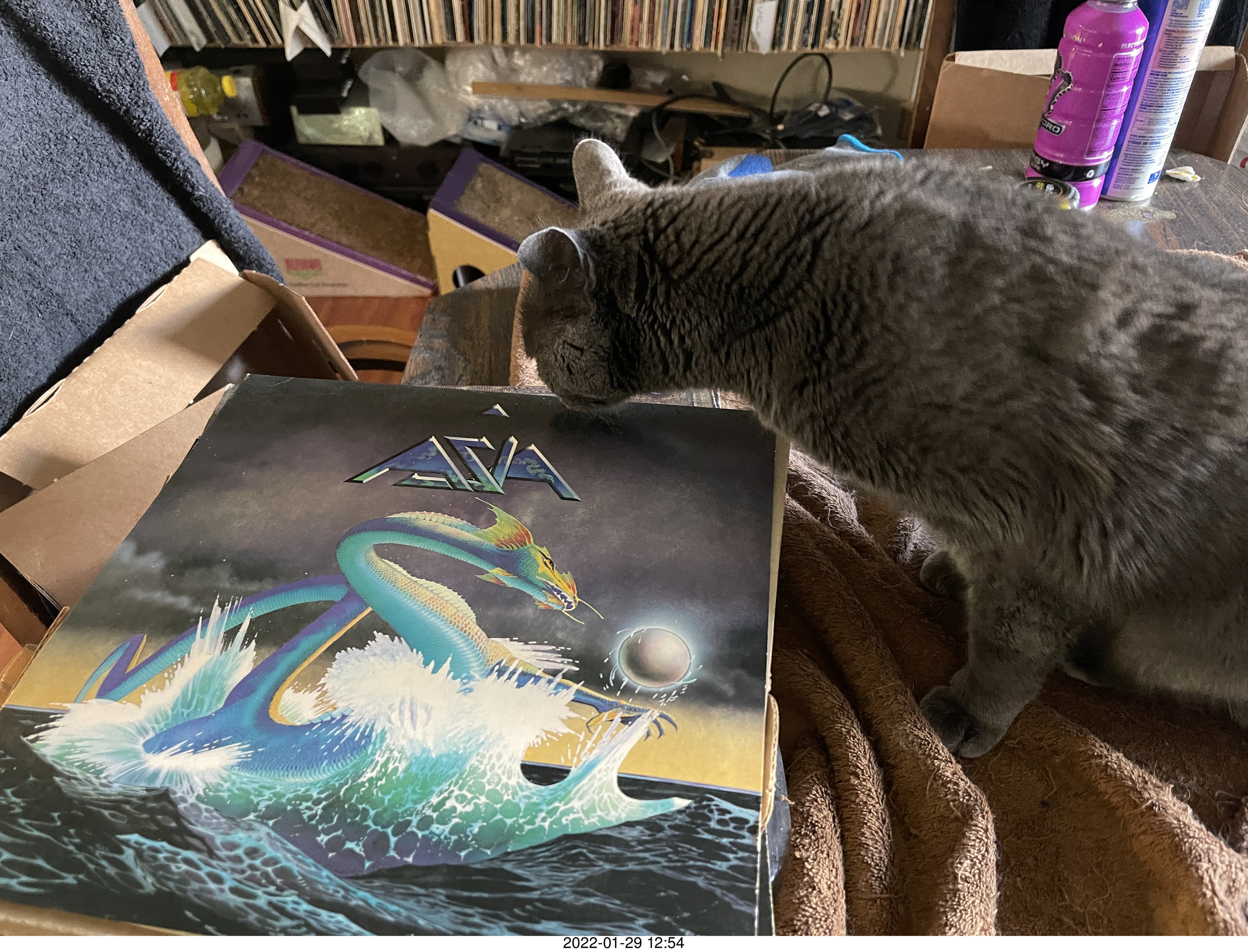 737. my cat Devin investigating Alanna's old records