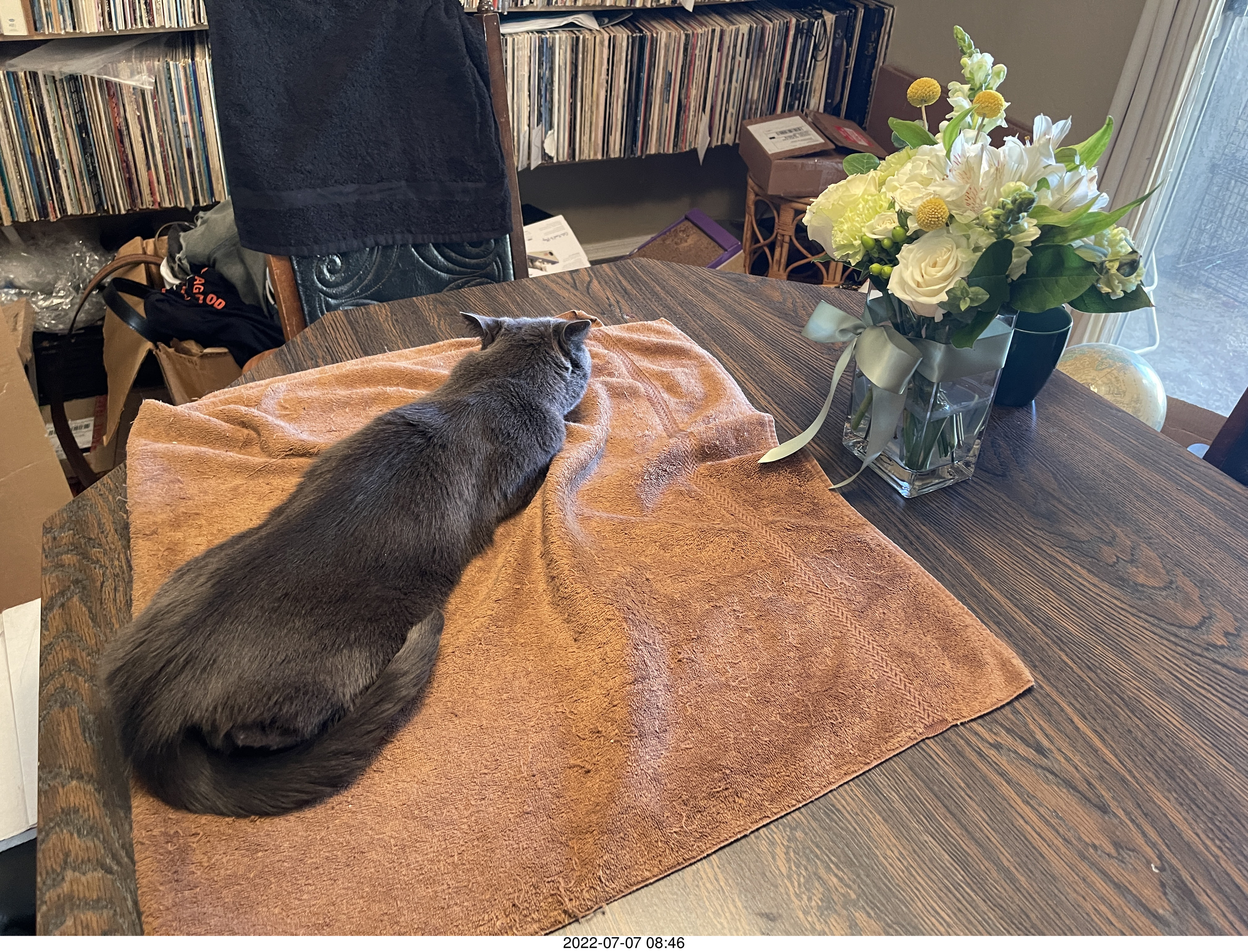 917. my cat Jane and floral arrangement