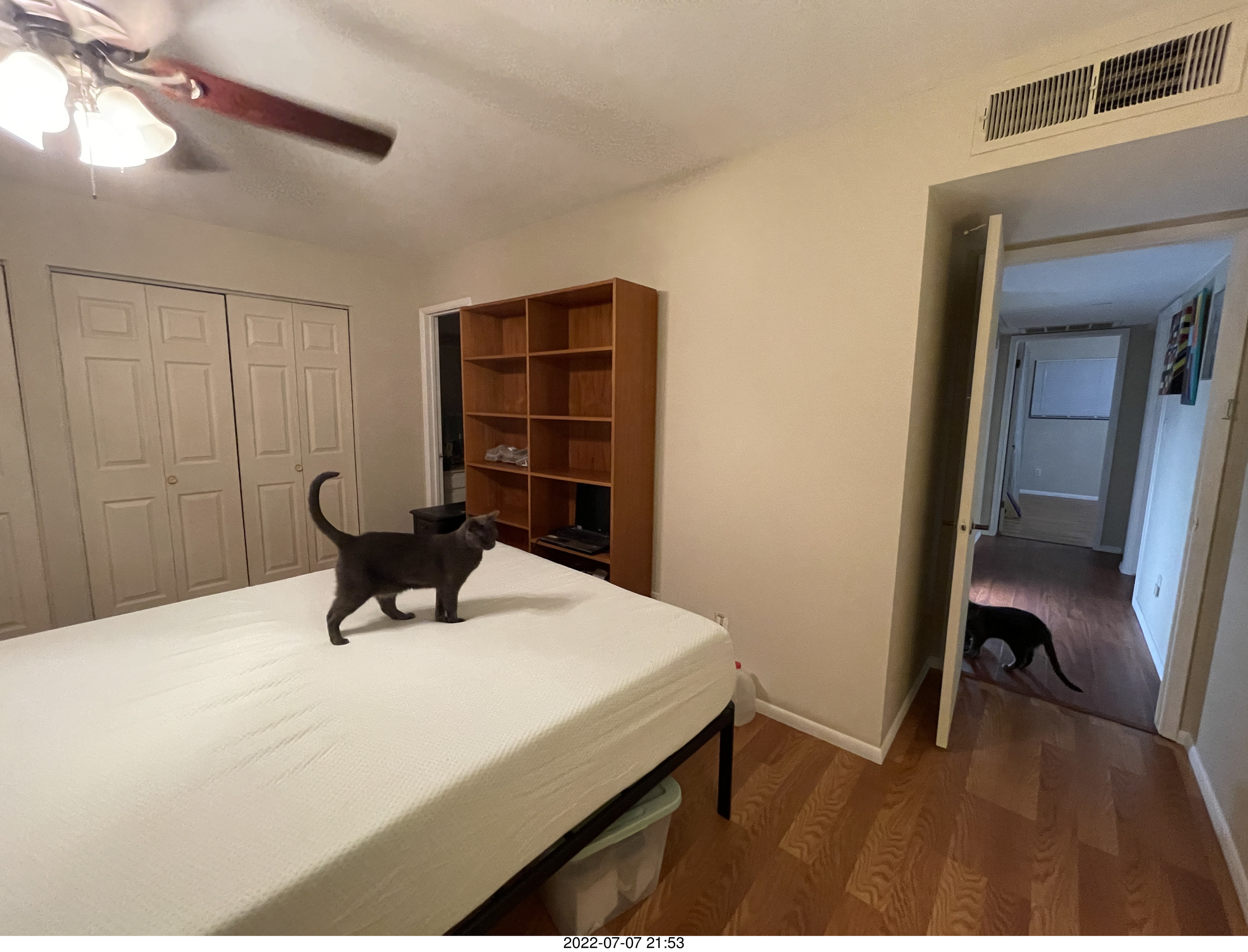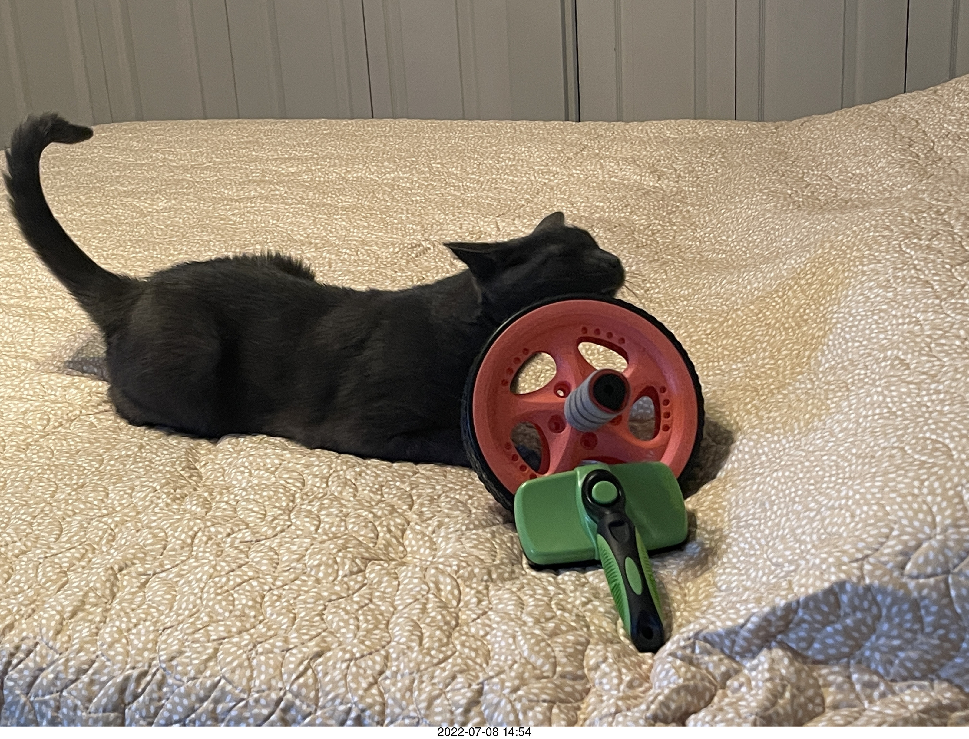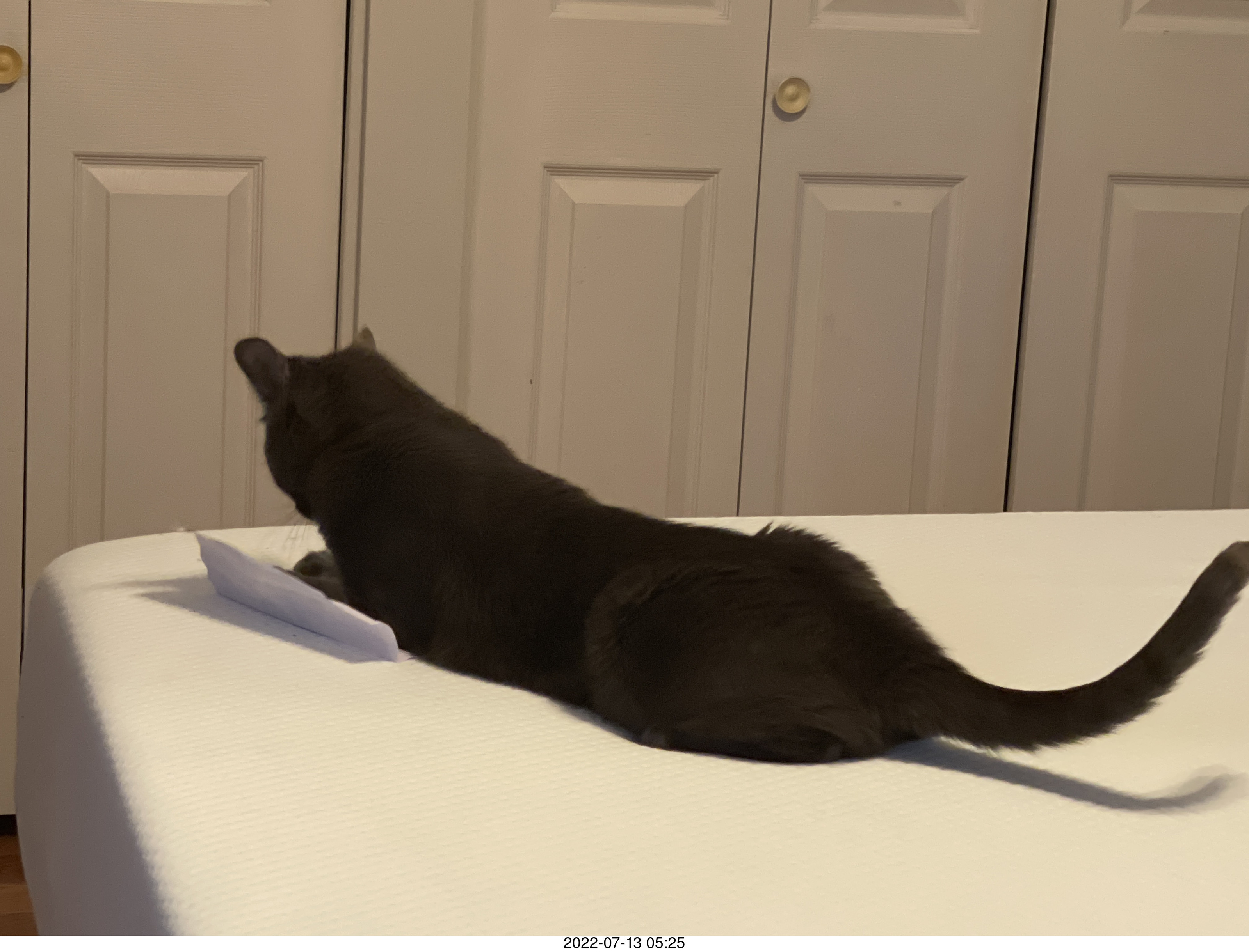 874. home construction - my cat Devin on my new mattress cover