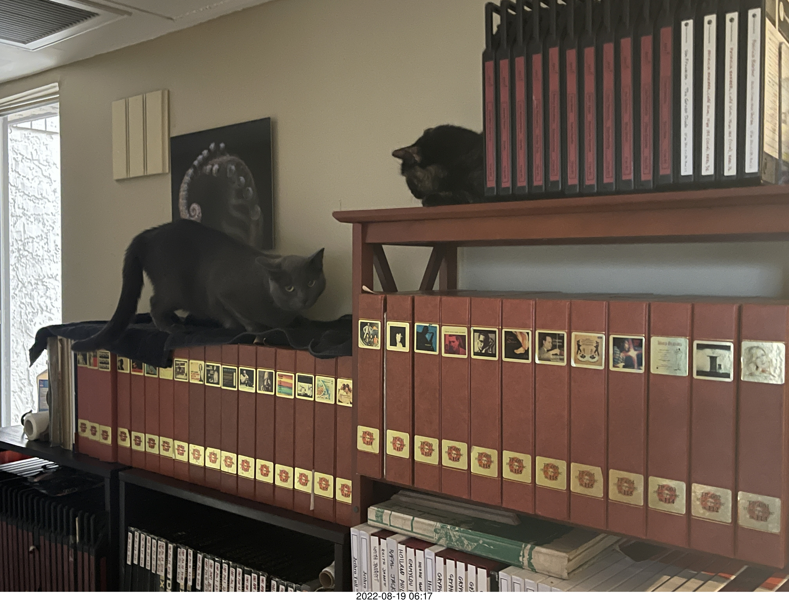 902. my cats Devin and Miss Pris atop my tapes