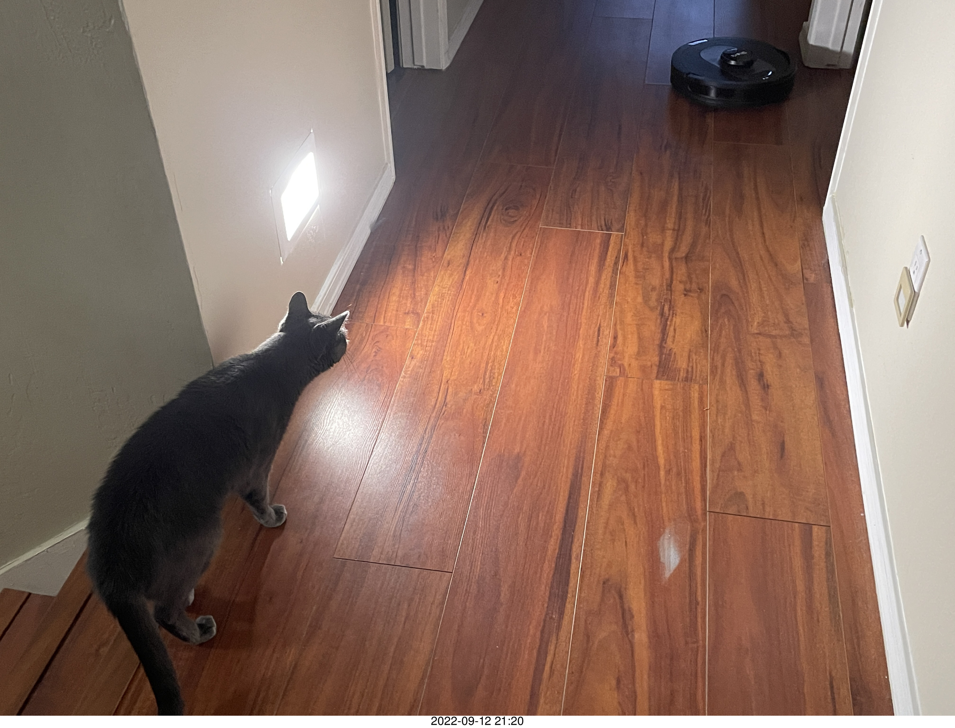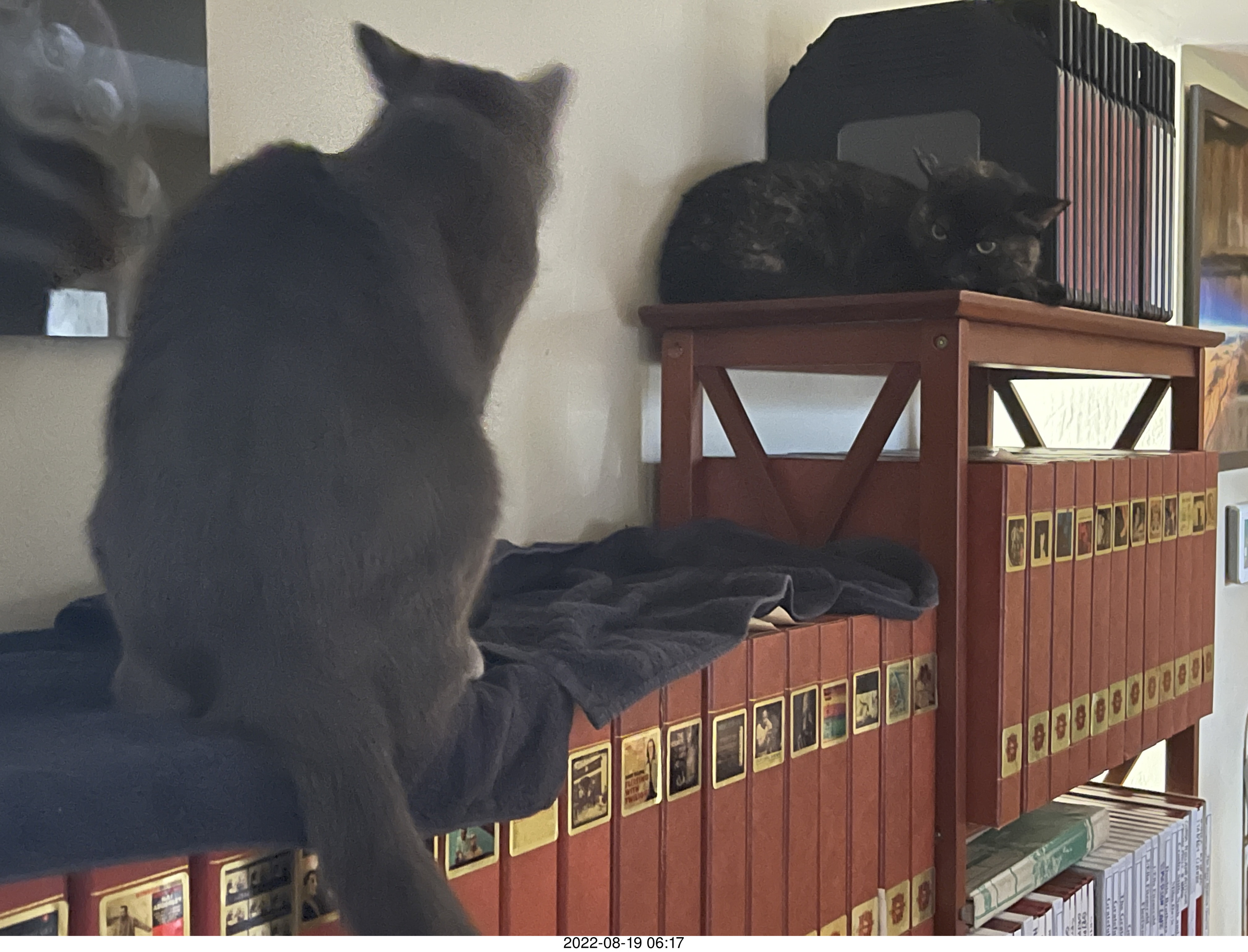 Shark AI Robot in box and my cat Devin my cats Devin and Miss Pris atop my tapes