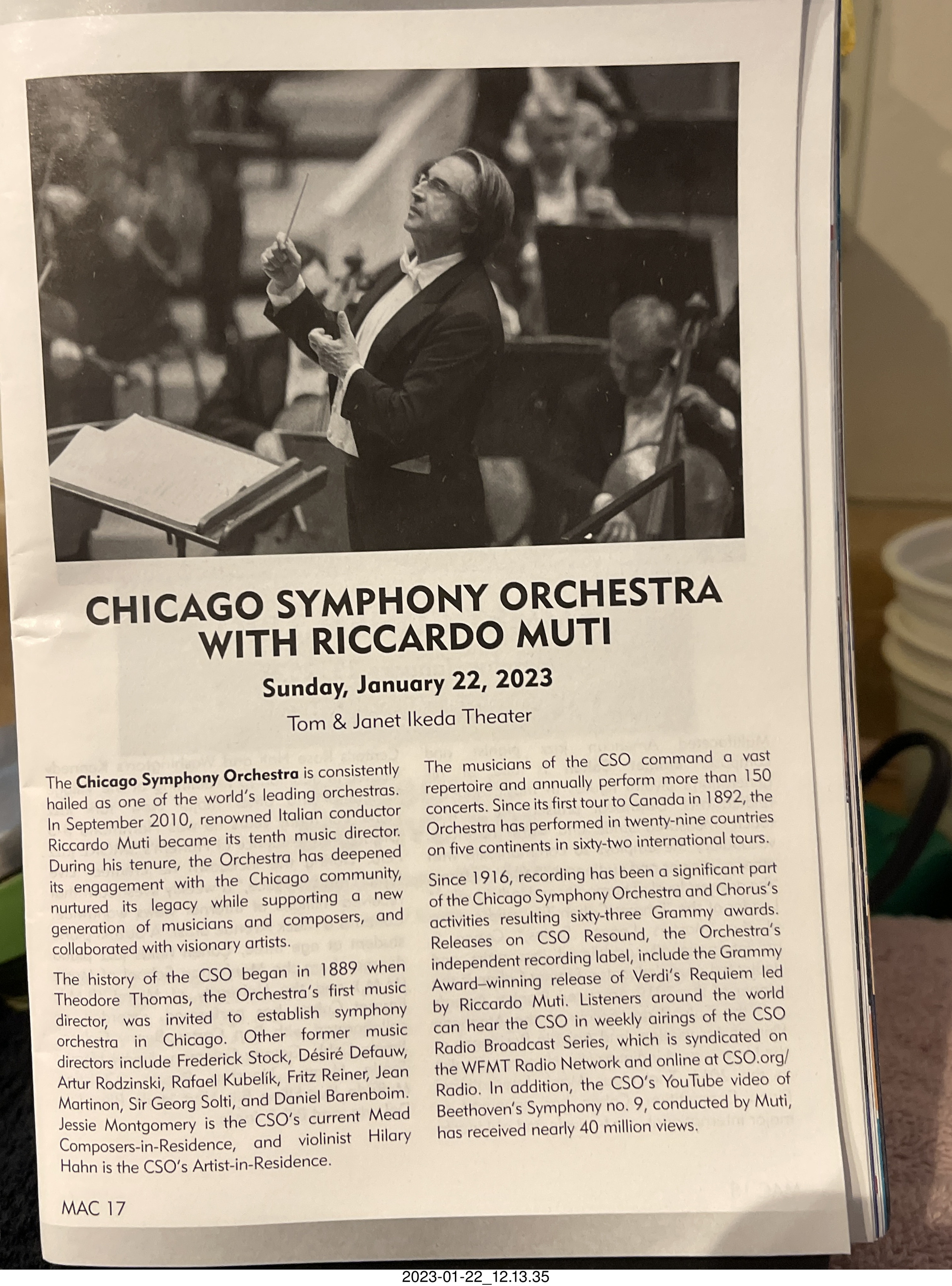 7. Mesa Arts Center- Chicago Symphony with Riccardo Muti program