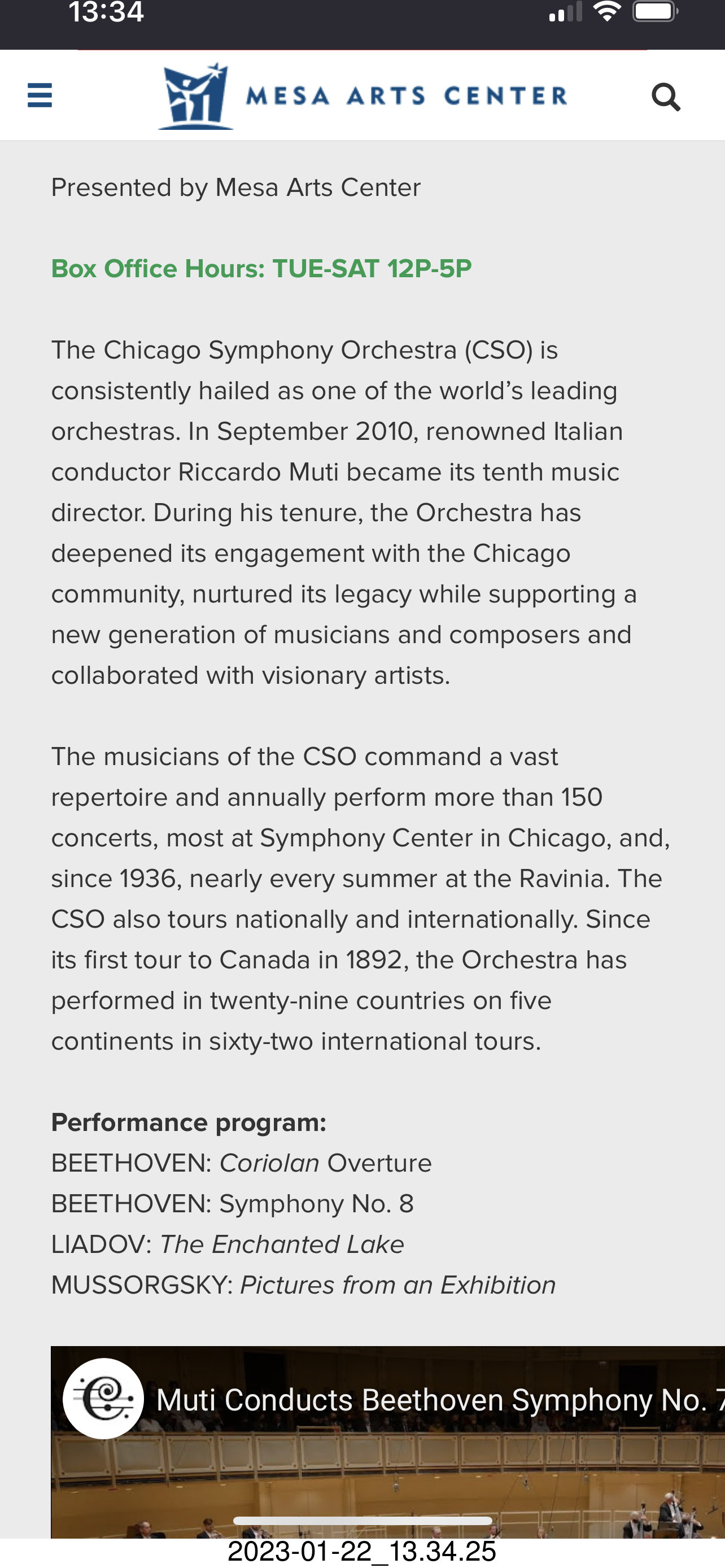Mesa Arts Center- Chicago Symphony with Riccardo Muti advertisement meet with Riccardo Muti