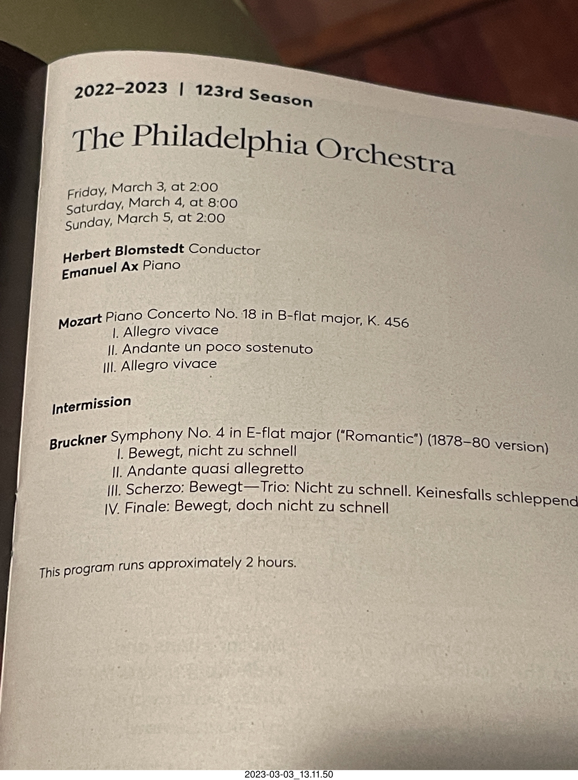 5147. Kimmel Center - Verizon Hall - Philadelphia Orchestra program