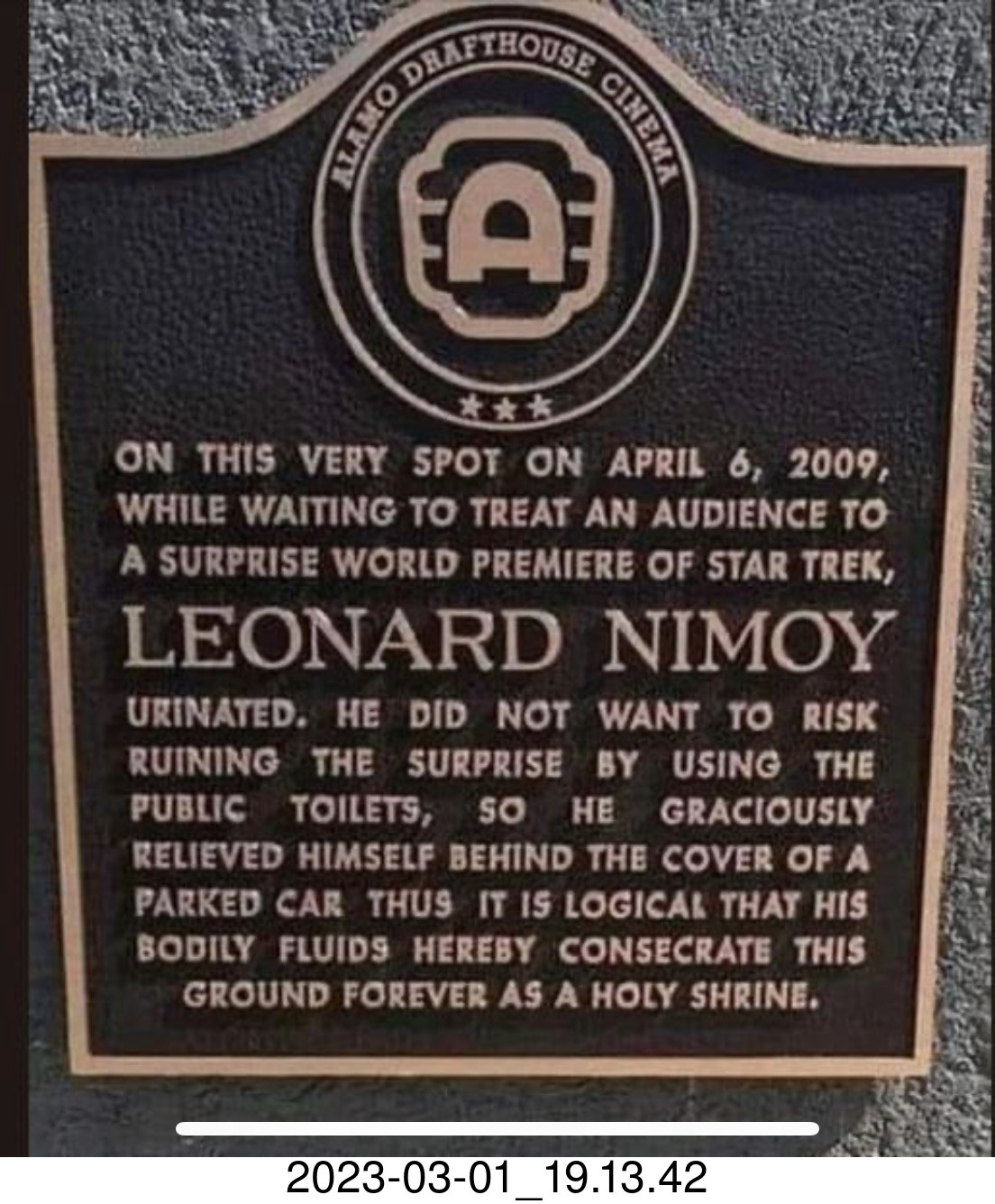 Astro Trails - Exmouth - total solar eclipse! (picture of my own picture) Facebook - Leonard Nimoy pissed here plaque