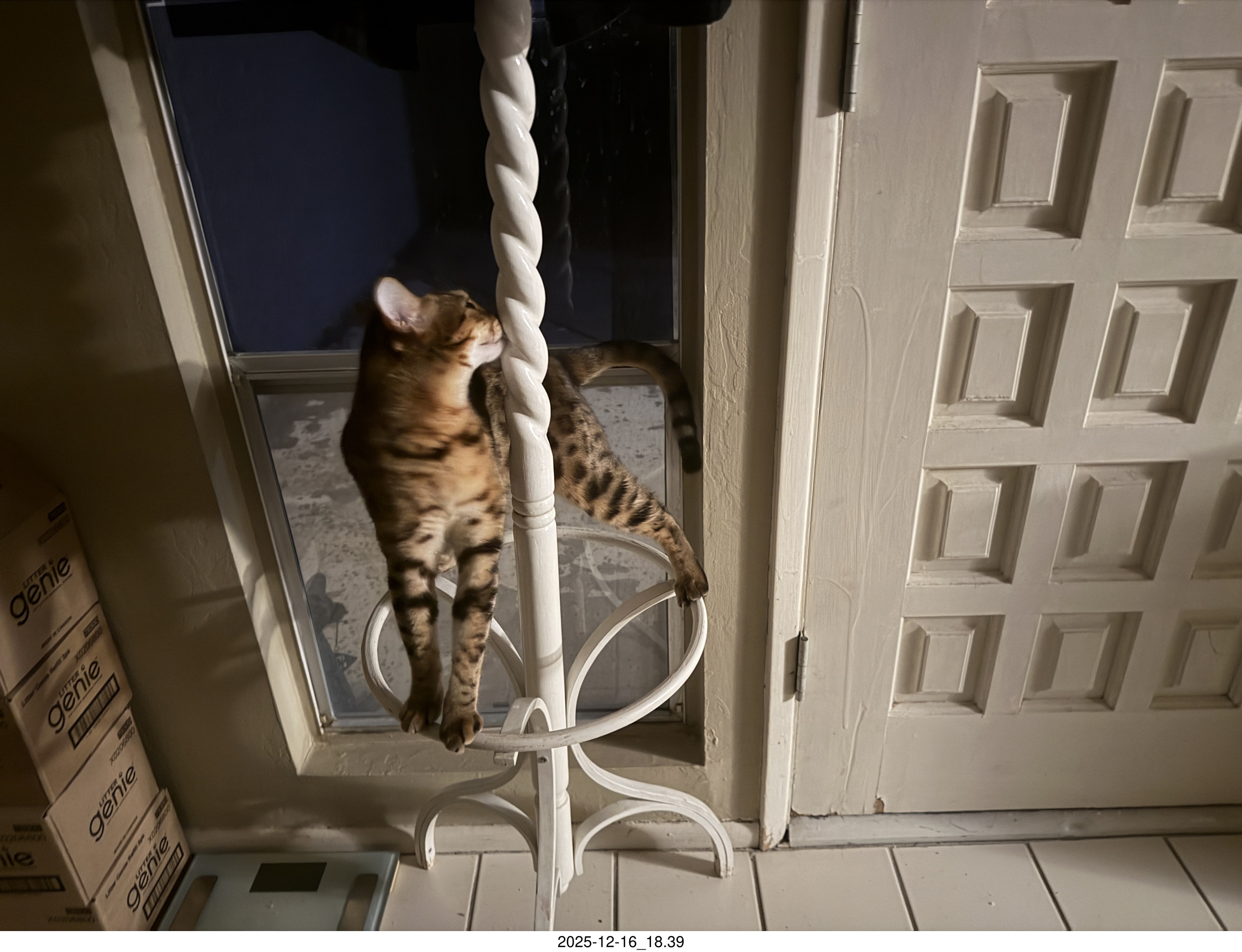 481. cat Pickle on my coat rack