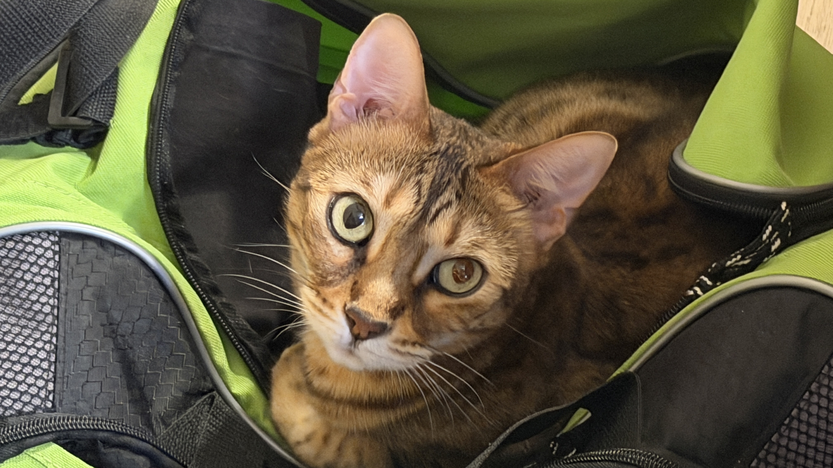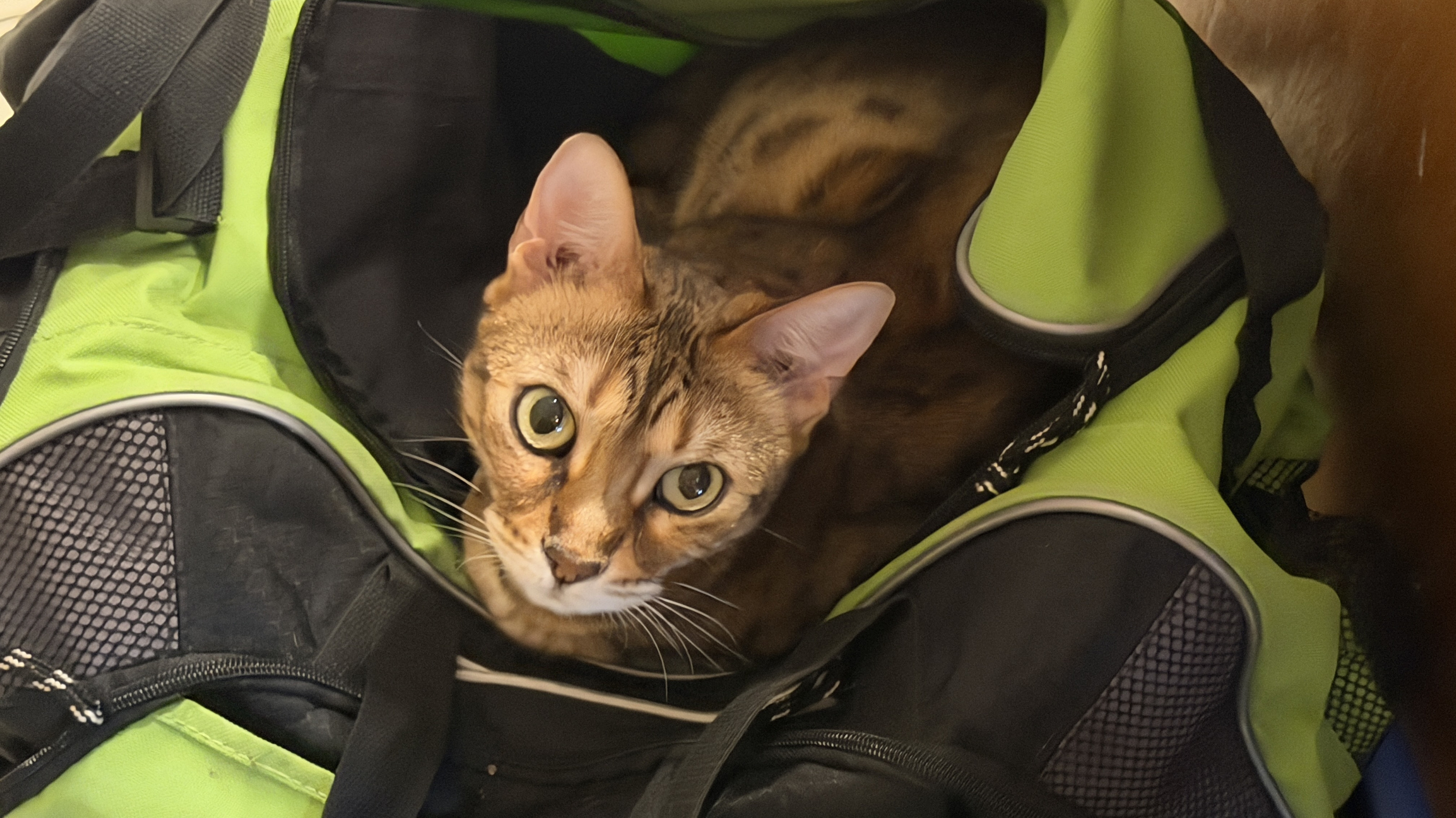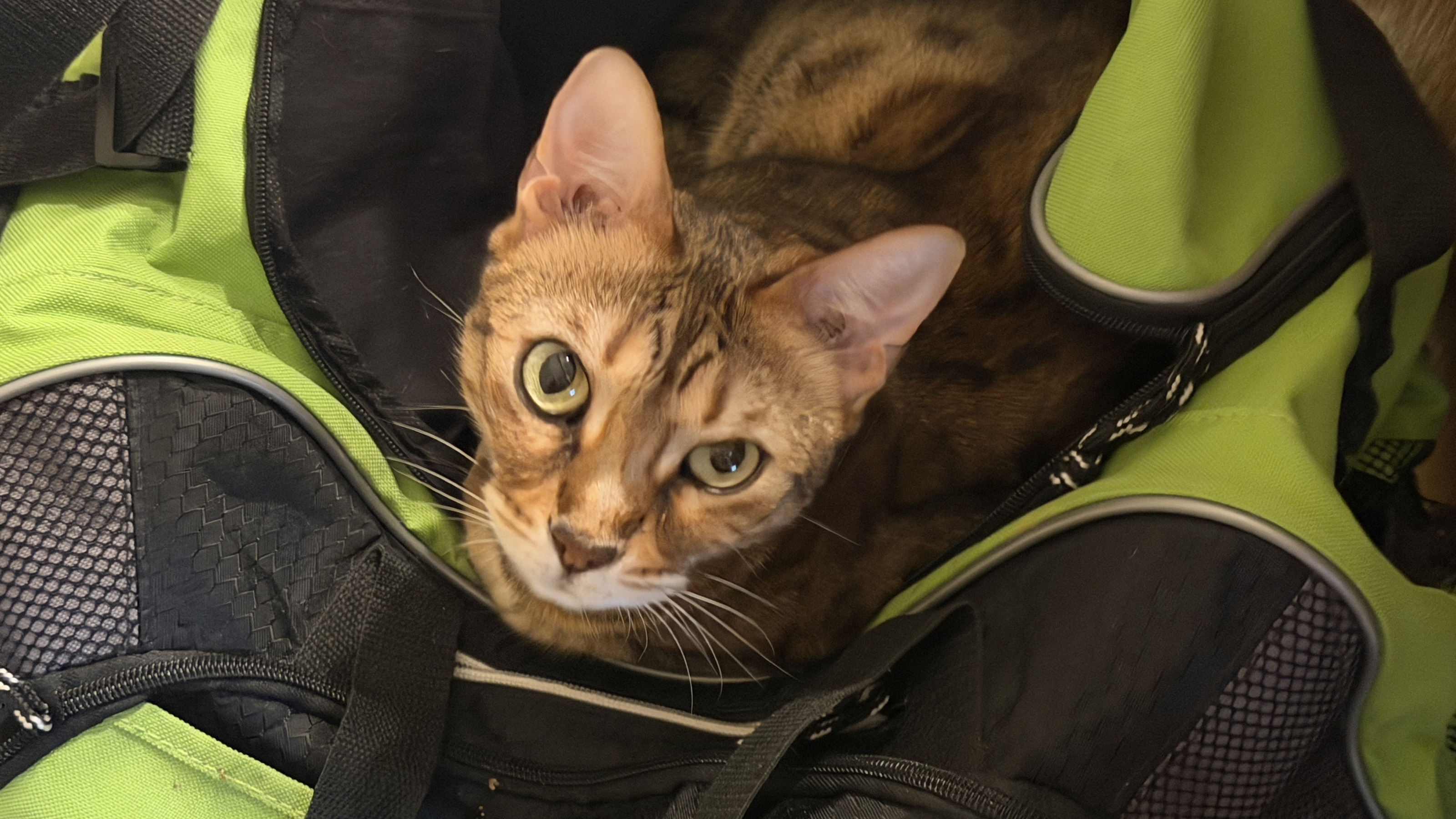 529. cat Pickle in my green bag