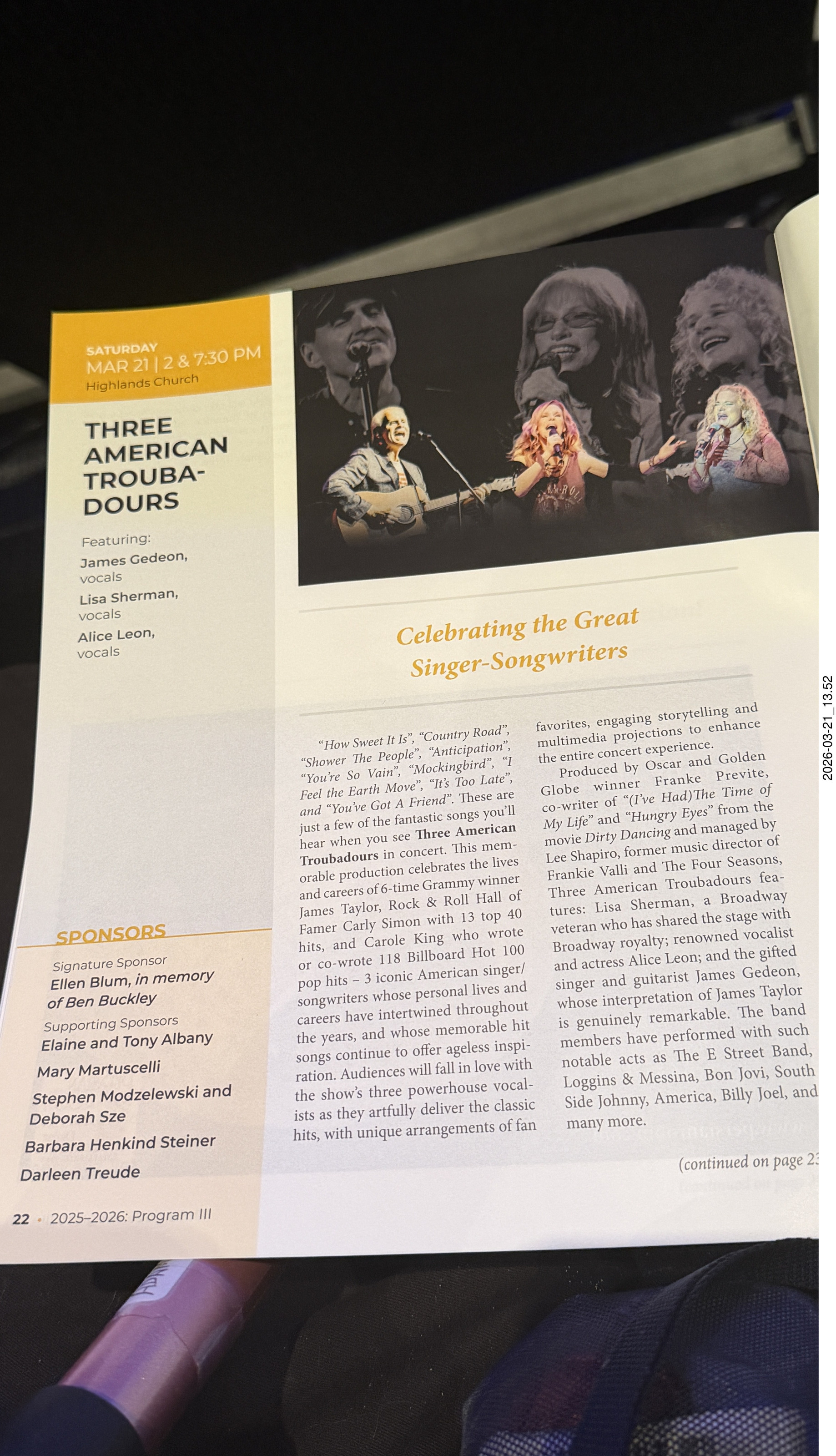 4. Arizona Musicfest - Three American Troubadours - program
