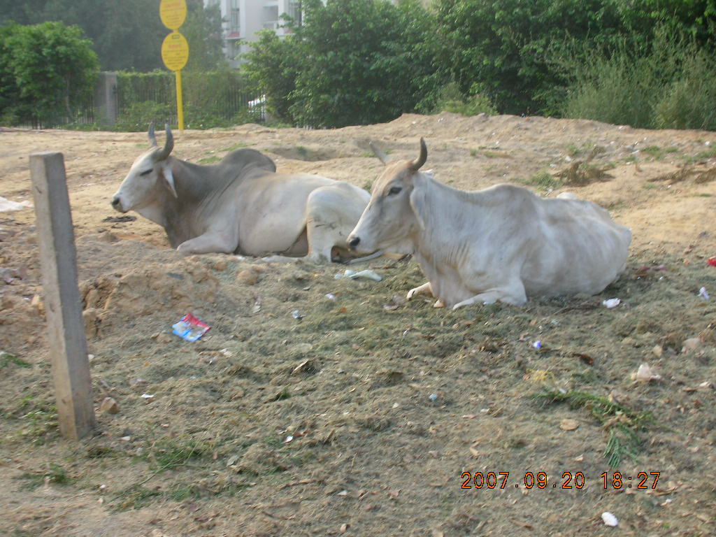 2007 September 20, Thursday, 69l-zvn.jpg * morning run, Gurgaon, India - bulls