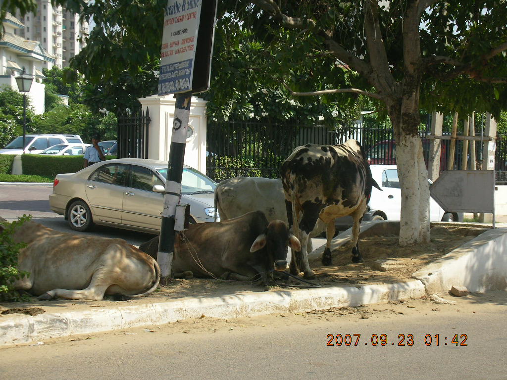 2007 September 26, Wednesday, 69s-4lg.jpg * roadside cattle, Gurgaon, India