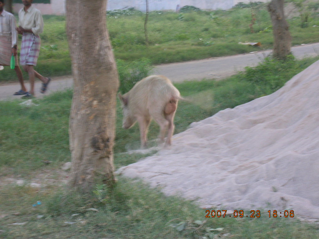 2007 September 26, Wednesday, 69s-4mz.jpg * morning run, Gurgaon, India - pig