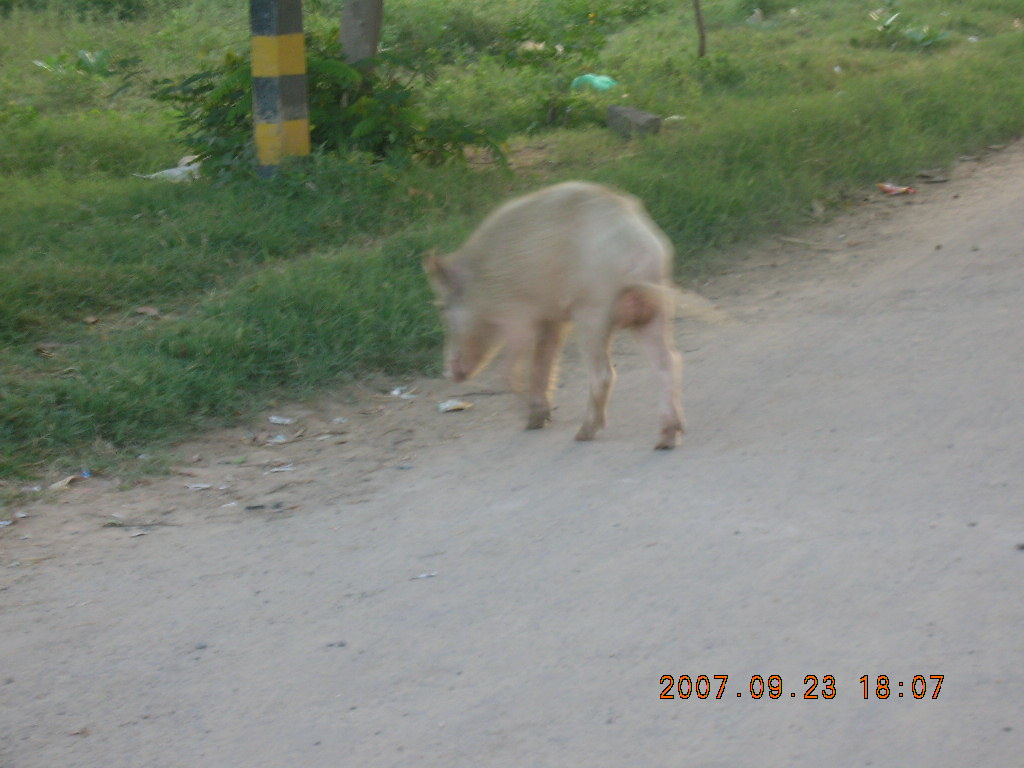 2007 September 26, Wednesday, 69s-4mv.jpg * morning run, Gurgaon, India - pig