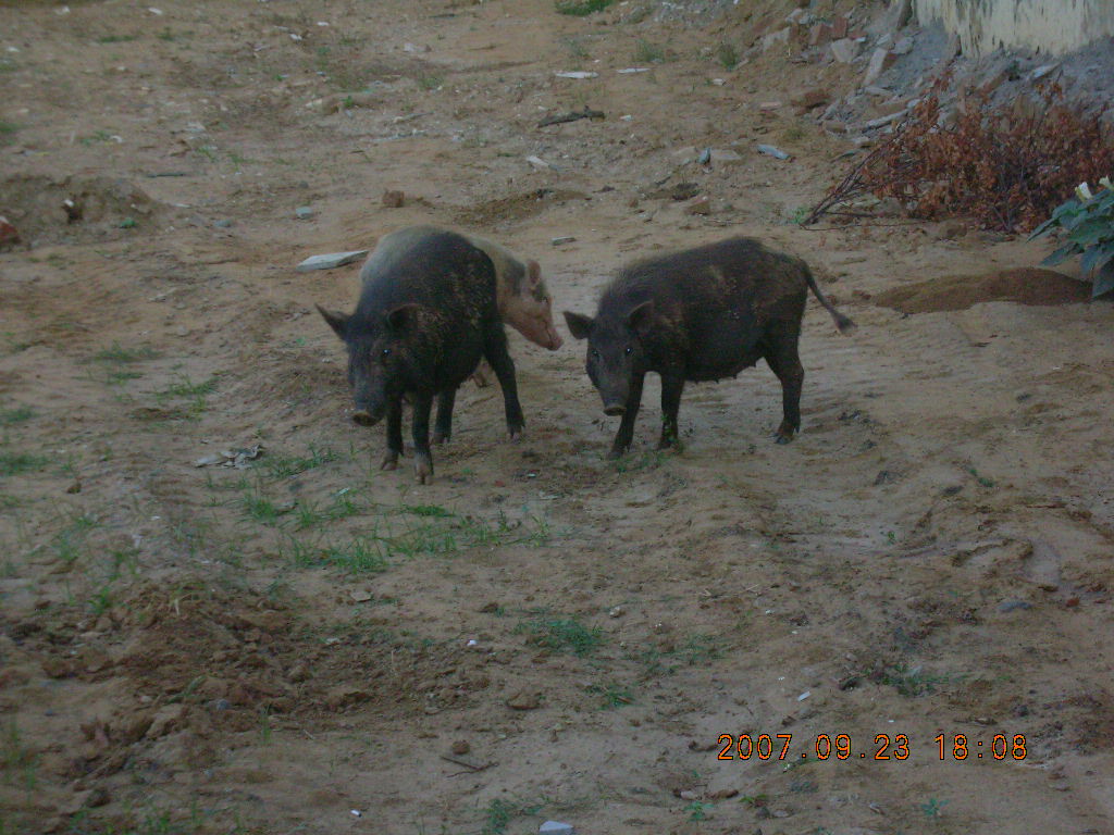 2007 September 26, Wednesday, 69s-4m3.jpg * morning run, Gurgaon, India - pigs