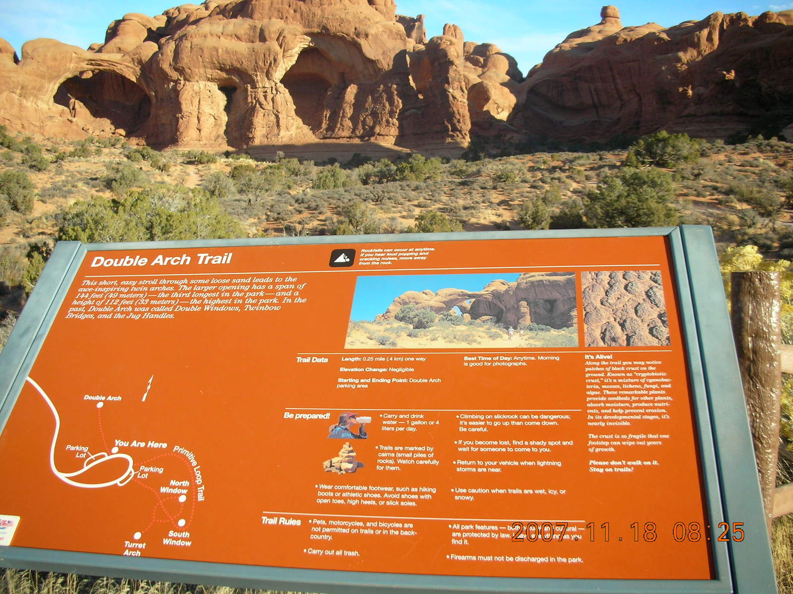 2007 November 18, Sunday, 6bj-zd7.jpg * Arches National Park - Double Arch trail sign