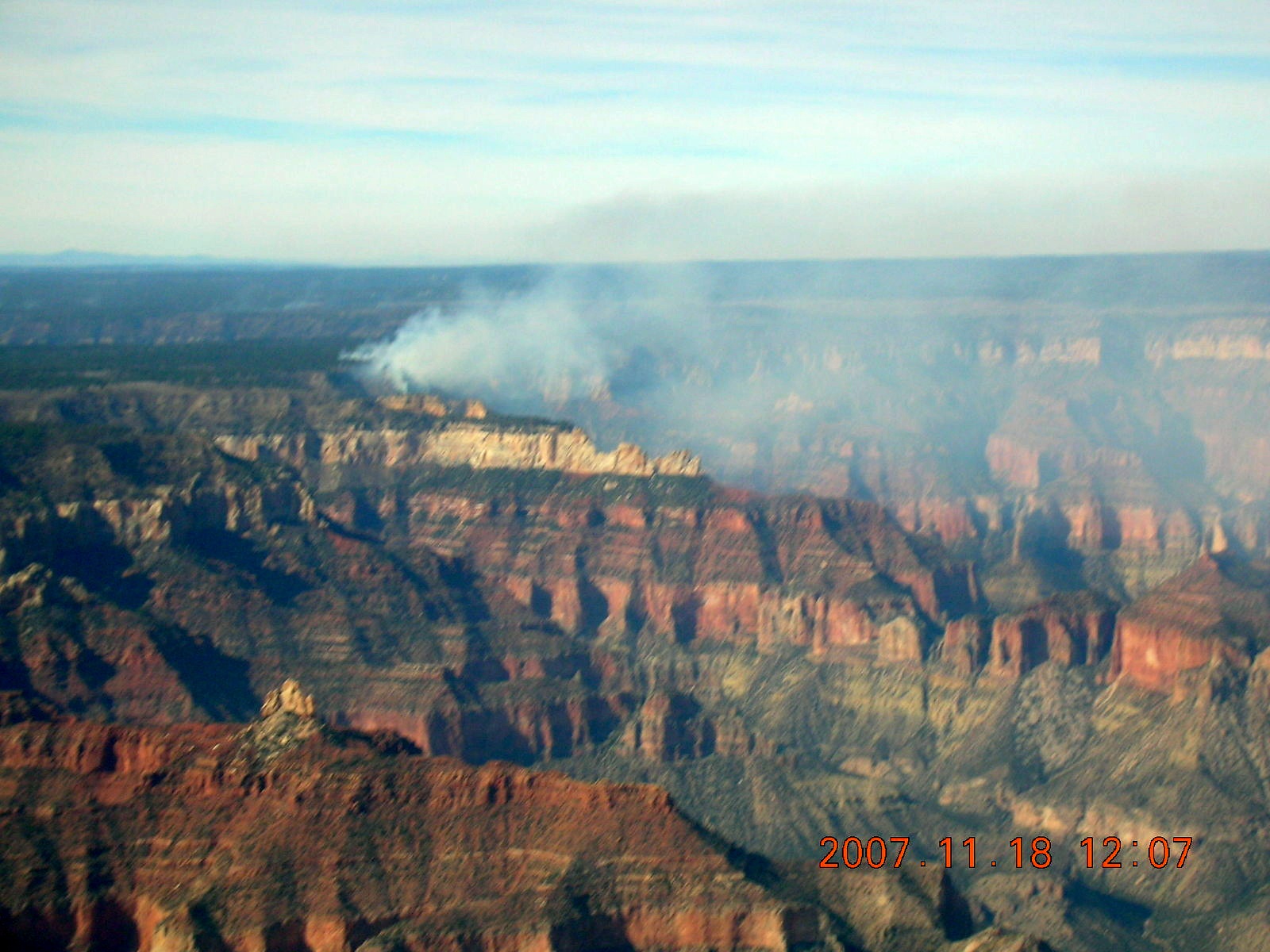 199 6bj. aerial - smoke on north rim of Grand Canyon