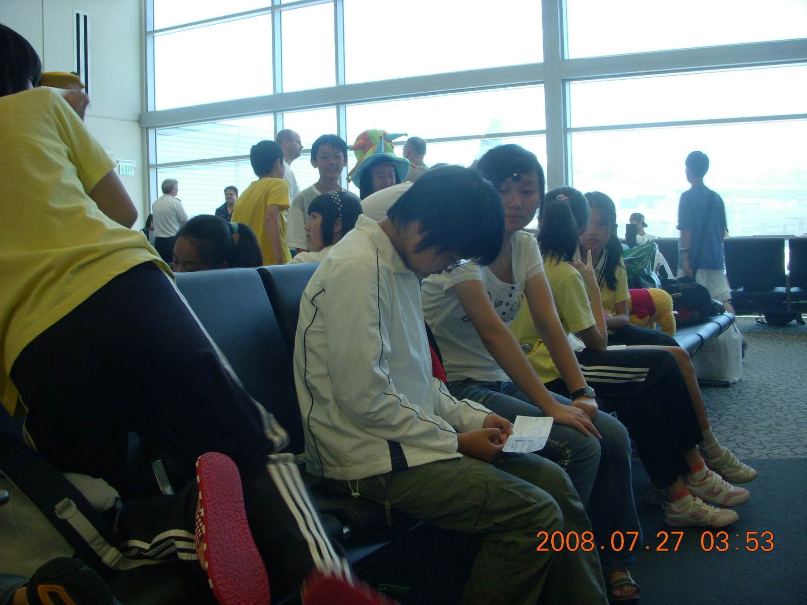2008 August 3, Sunday, 6l3-lr3.jpg * a whole lotta Chinese kids waiting for flight to Shanghai (PVG)