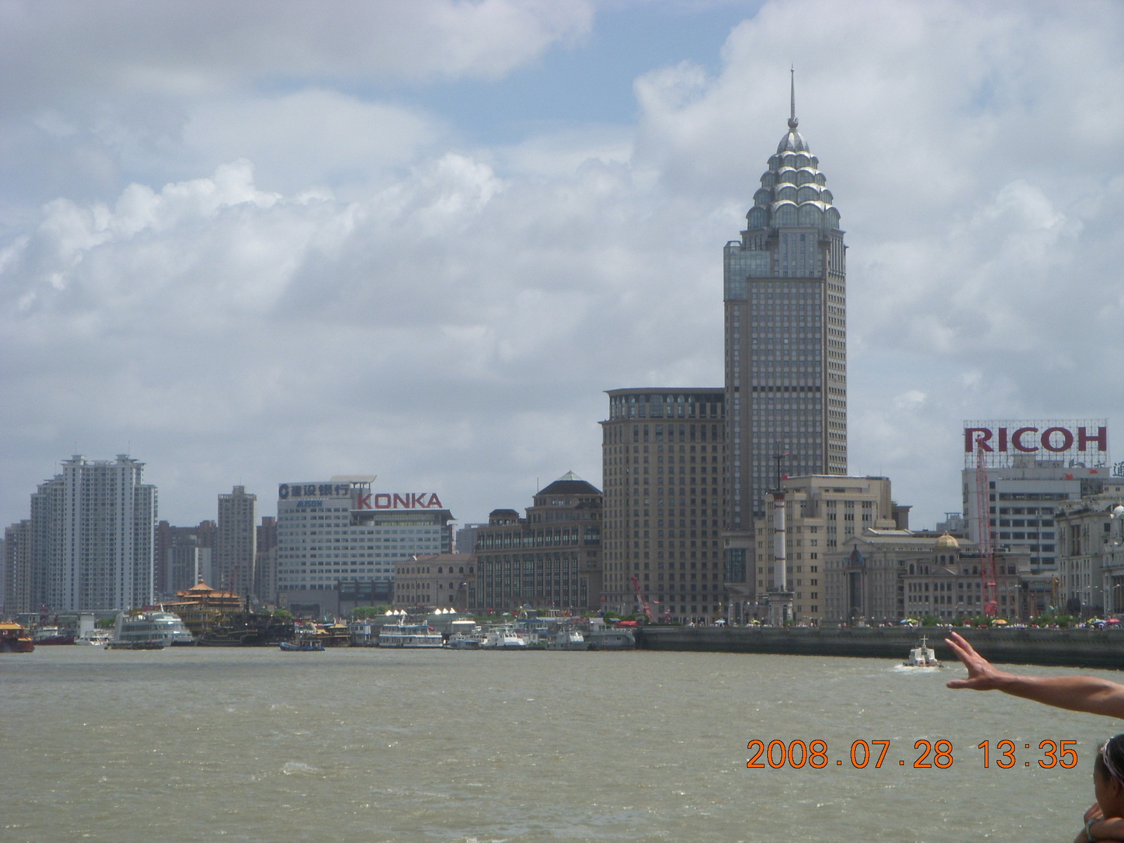 2008 August 3, Sunday, 6l3-lzb.jpg * eclipse - Shanghai - Bund - skyline - boat