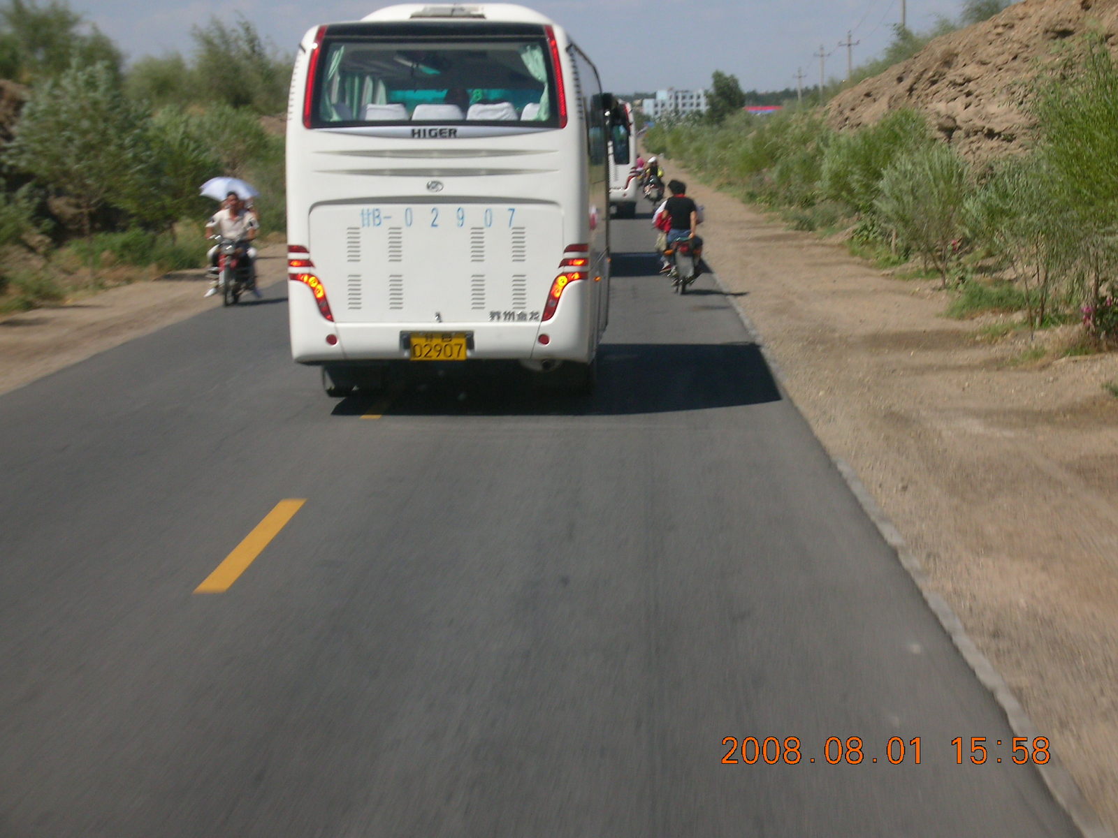 2008 August 3, Sunday, 6l3-s8i.jpg * eclipse - Jiuquan morning run- chickens and a flat tire