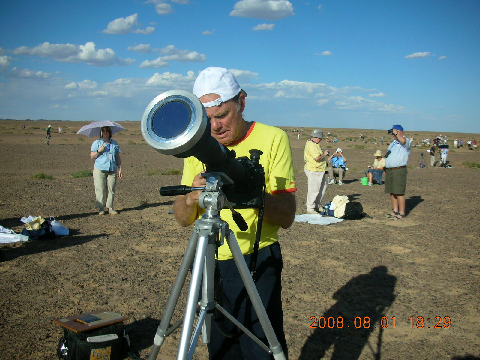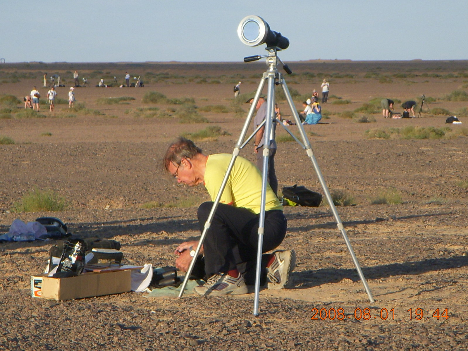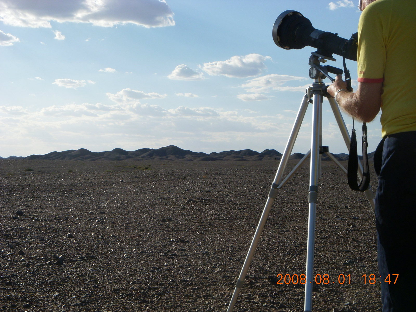 259 6l1. eclipse - Jiayuguan - Gobi Desert - final moments, Bill and his gear