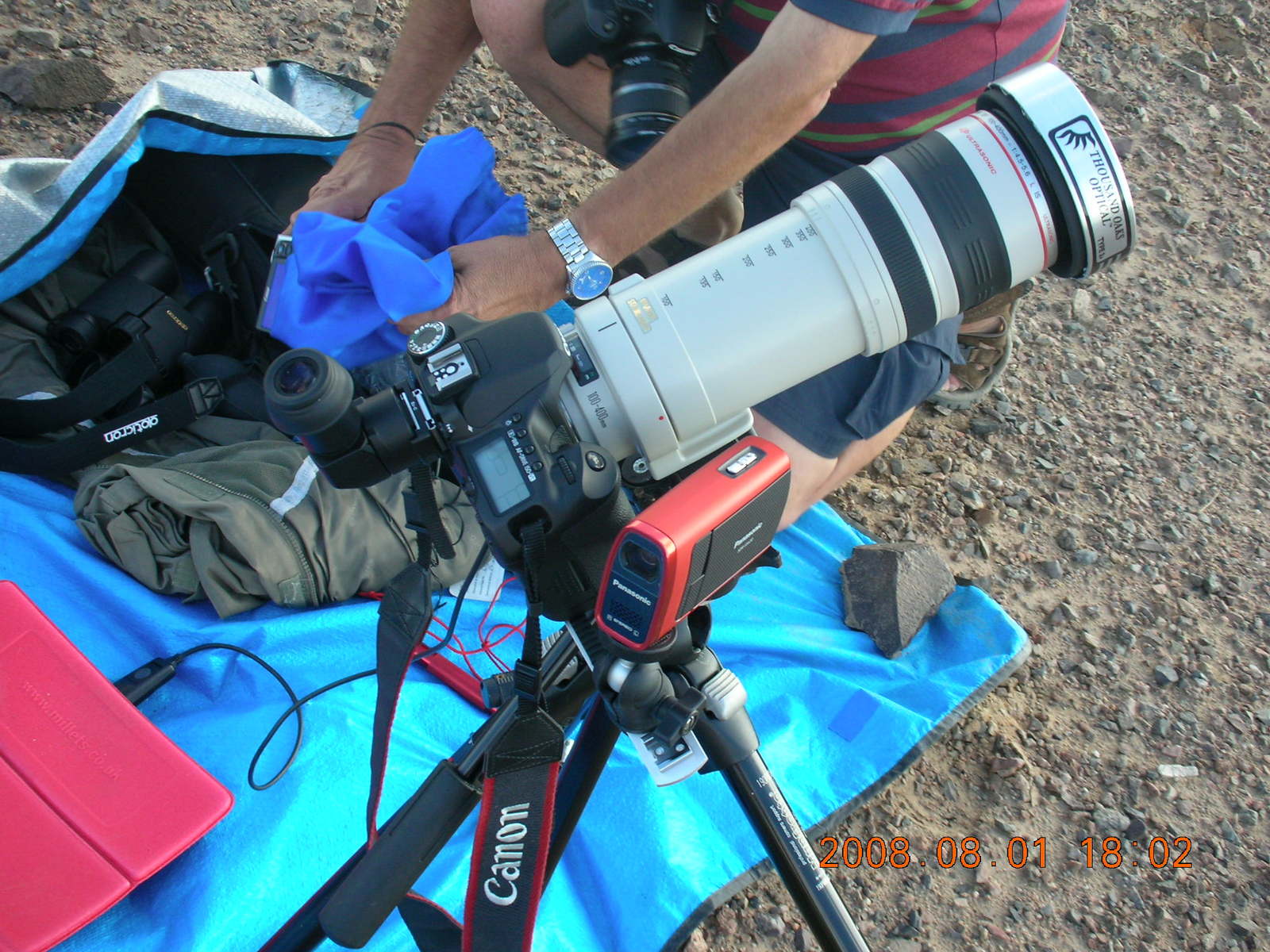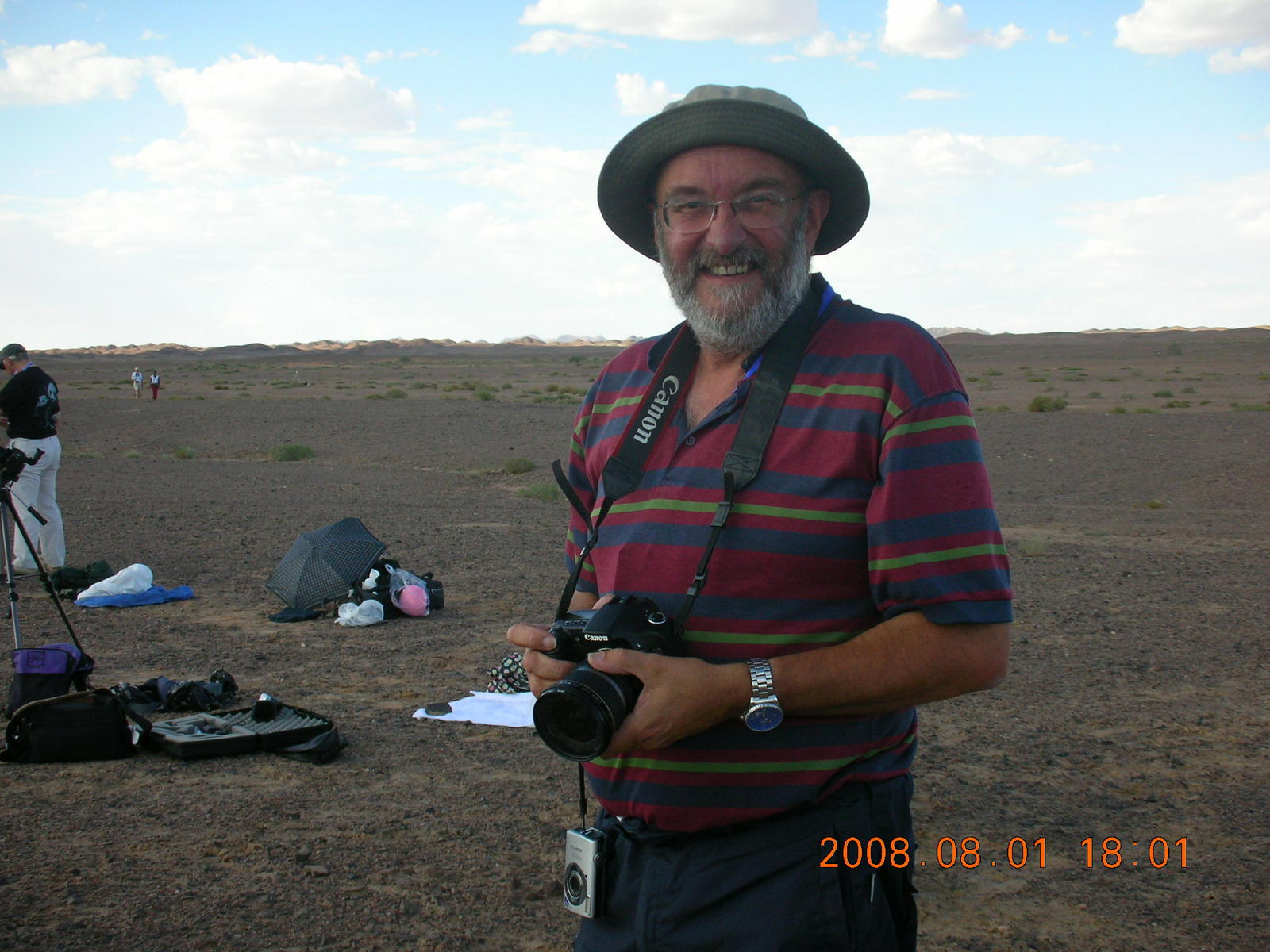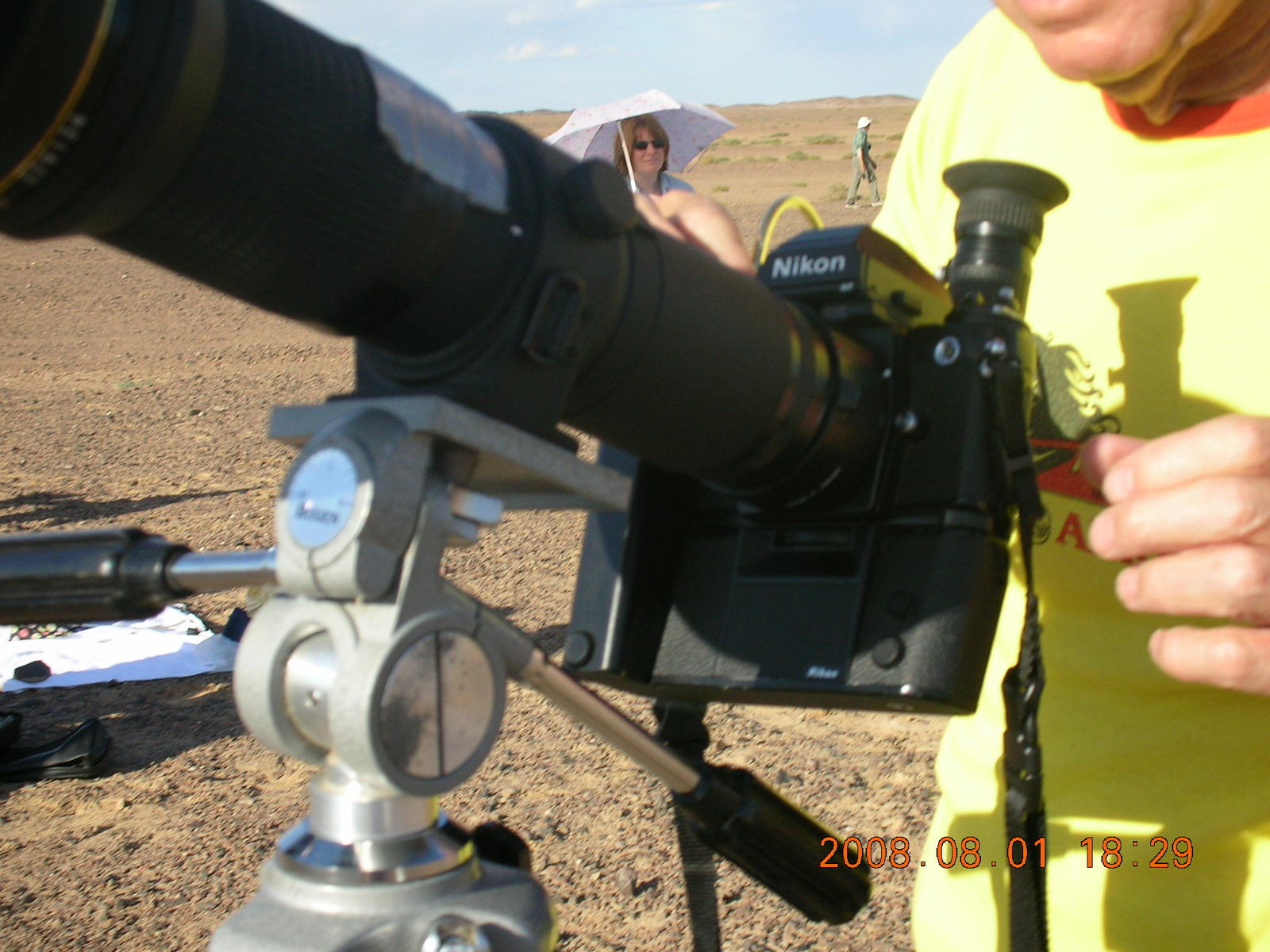 259 6l1. eclipse - Jiayuguan - Gobi Desert - final moments, Bill and his gear