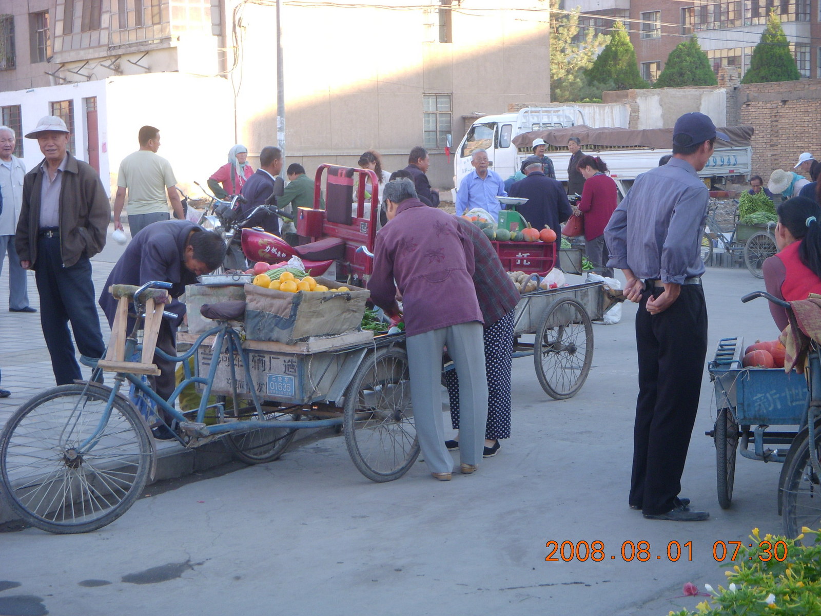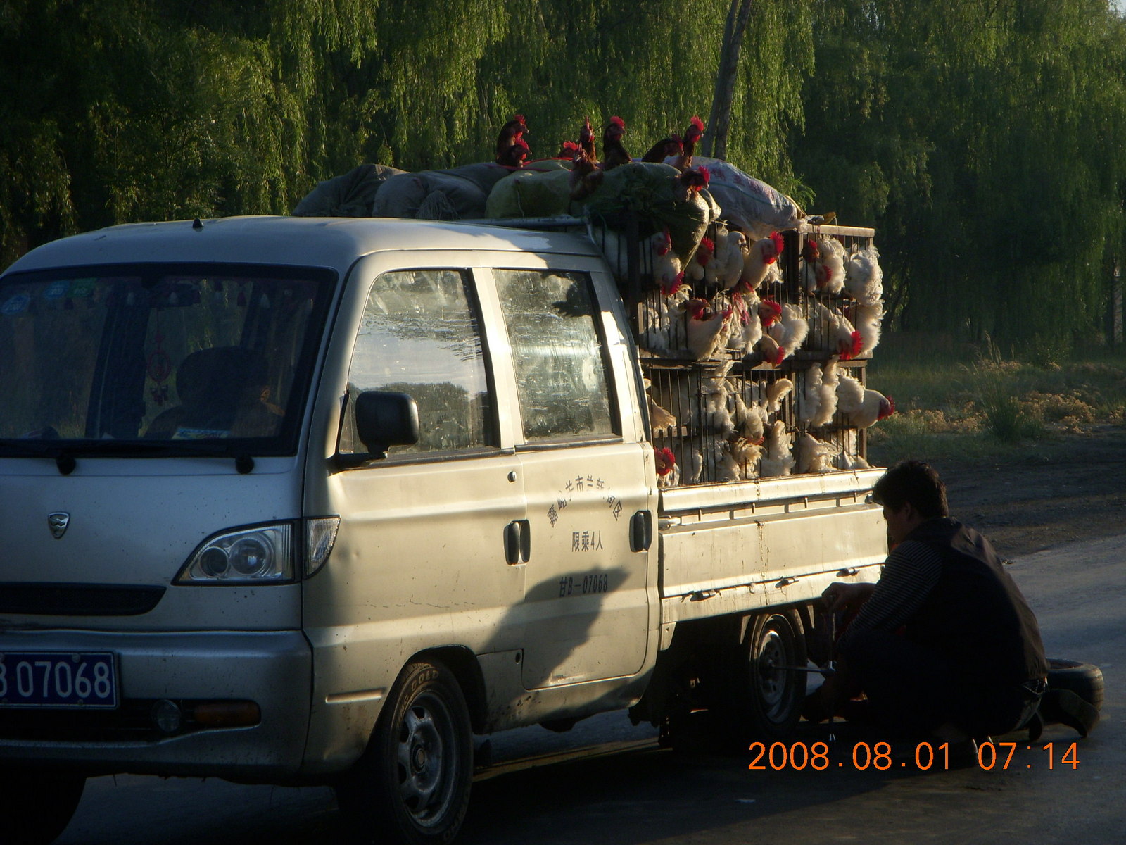 2008 August 3, Sunday, 6l3-s8e.jpg * eclipse - Jiuquan morning run - chickens and a flat tire