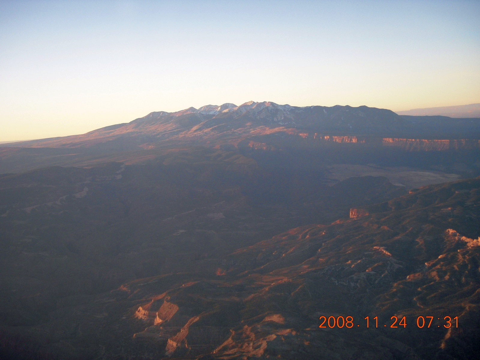 2008 November 24, Monday, 6pq-v78.jpg * aerial - Arches area at sunrise - LaSalle Mountains