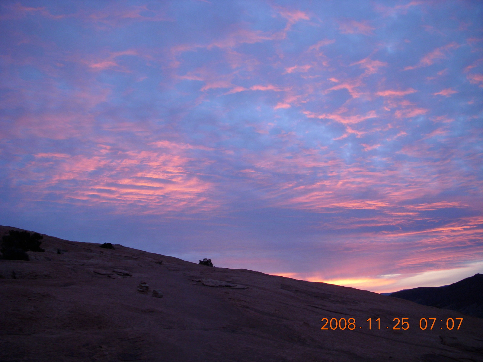 2008 November 25, Tuesday, 6pr-uxh.jpg * Arches National Park - Delicate Arch hike - red sky of sunrise